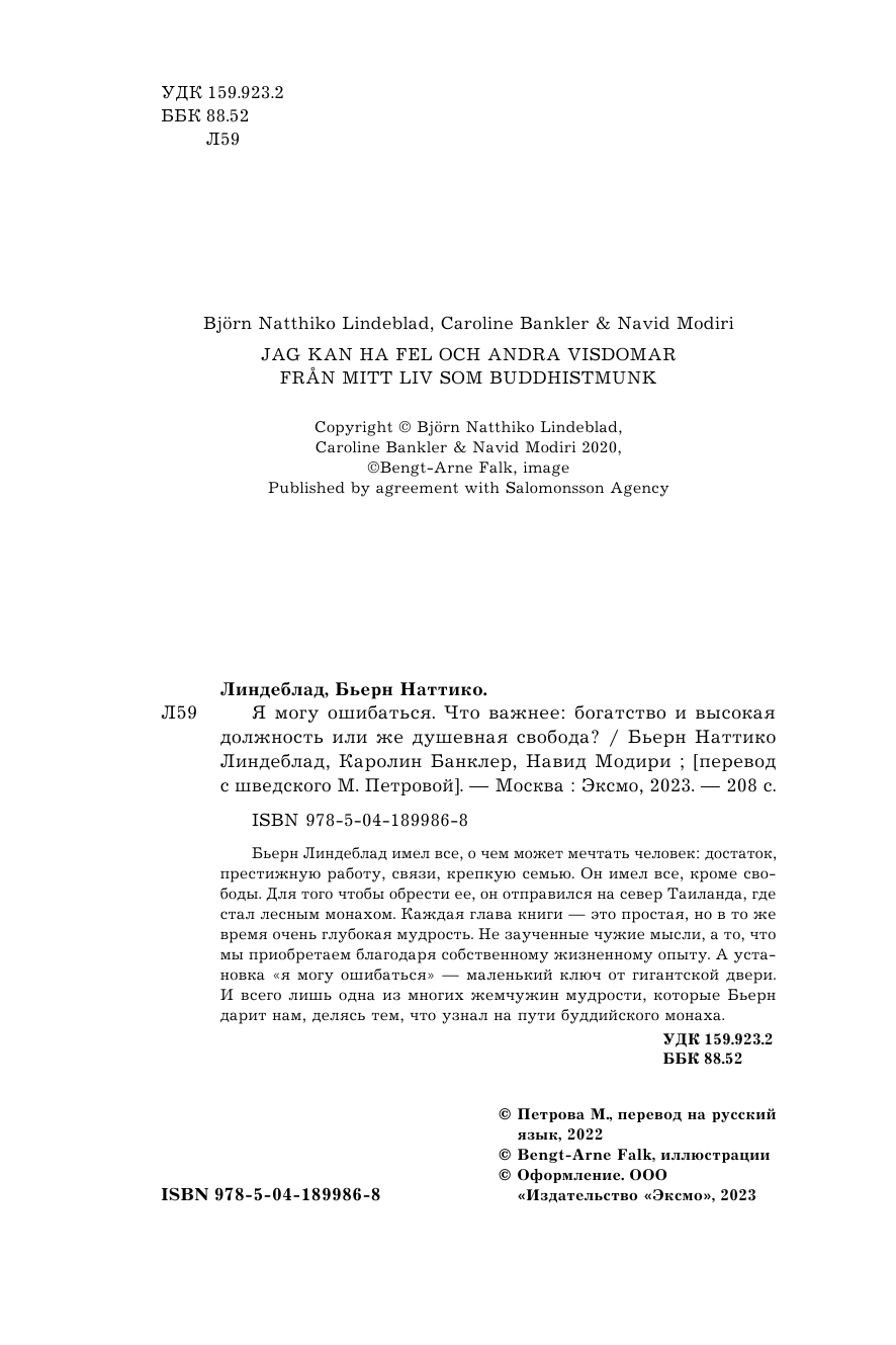 На сегодняшний день товар «Книга: Я могу ошибаться. Что важнее: богатство и высокая должность или же душевная свобода? (Линдеблад Бьерн Наттико, Банклер Каролин, Модири Навид); БОМБОРА, 2023» можно купить с кешбеком в 3 магазинах: book24, Яндекс.Маркет, Буквоед