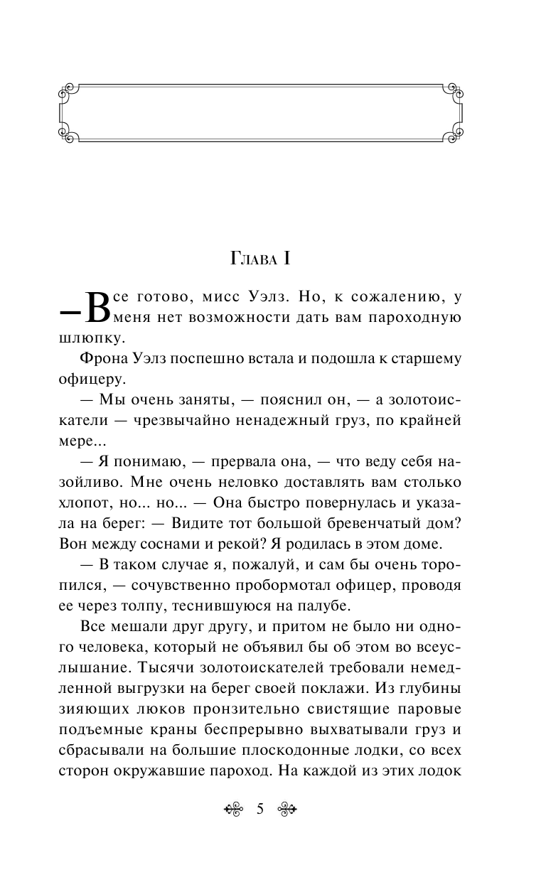 Фрона Уэлз, главная героиня романа, натура сильная, умная, отважная, независимая и свободная от светских условностей и в то же время необыкновенно обаятельная — словом, женщина, способная думать, любить, бороться и делить испытания наравне с лучшими из мужчин. Любовный треугольник на фоне безумной «золотой лихорадки» Клондайка, приключений золотоискателей и трагической судьбы индейцев — захватывающее смешение жанров.