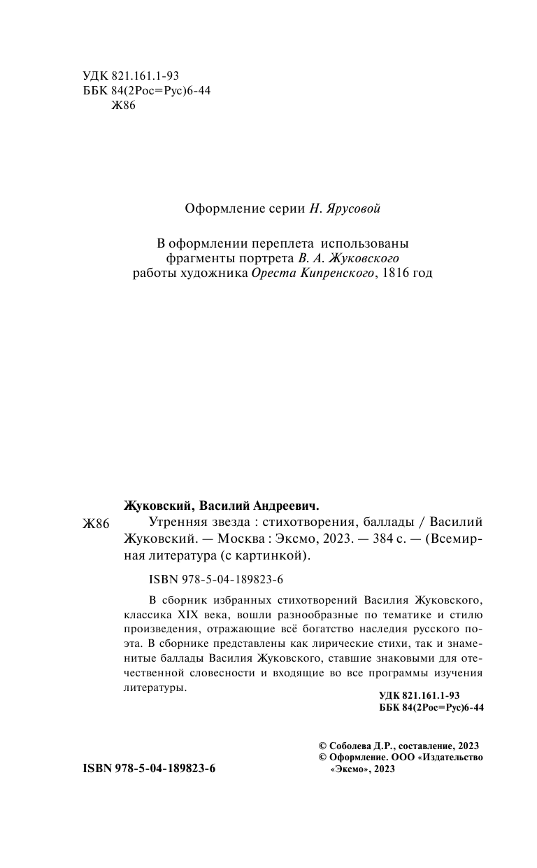 Утренняя звезда. Стихотворения. Баллады (Жуковский Василий Андреевич); ООО "Издательство "Эксмо", 2023