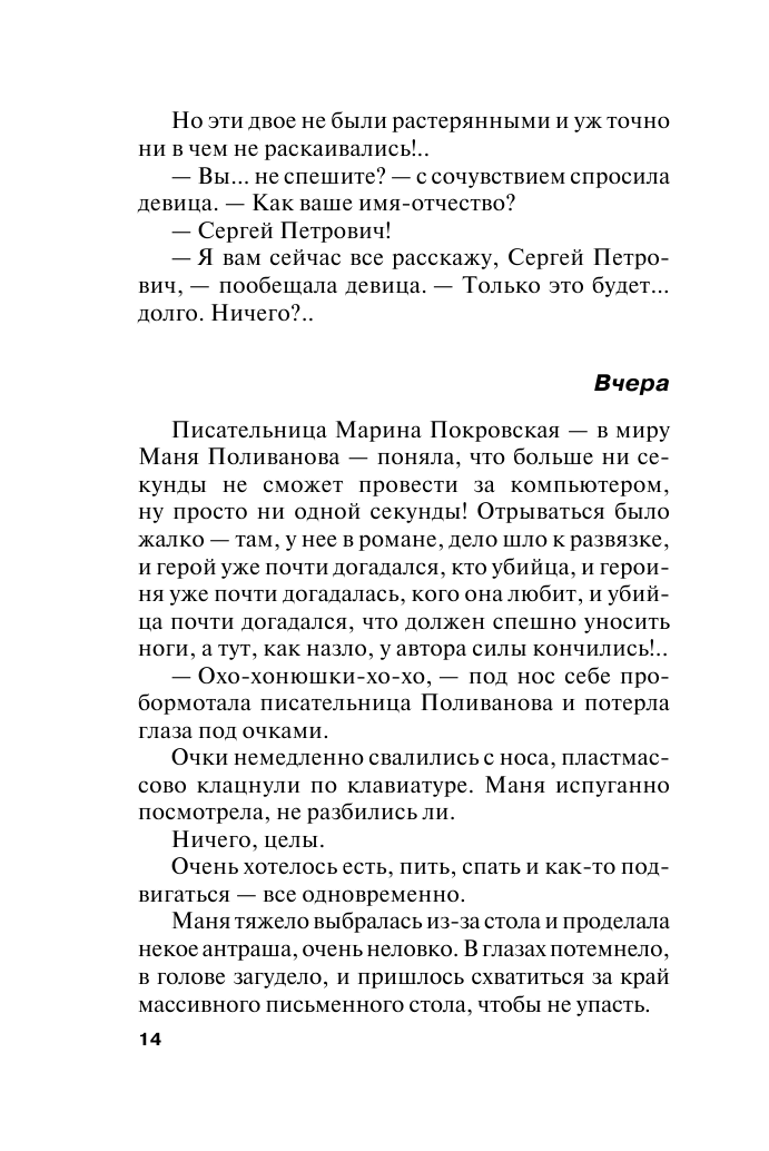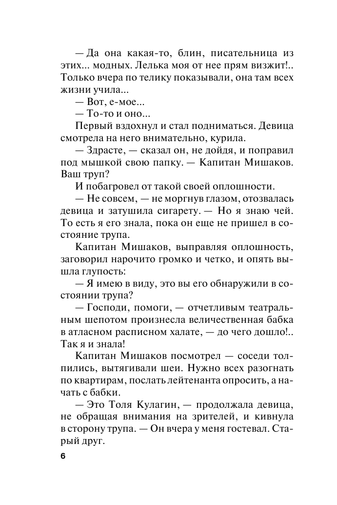 В подъезде дома, где живет автор детективных романов Маня Поливанова, убит ее старый друг, накануне заходивший на «рюмку чаю» и разговоры о вечном. Деньги и ценности остались при нем, а он сам не был ни криминальным авторитетом, ни большим политиком, ни богачом! Так за что его убили?