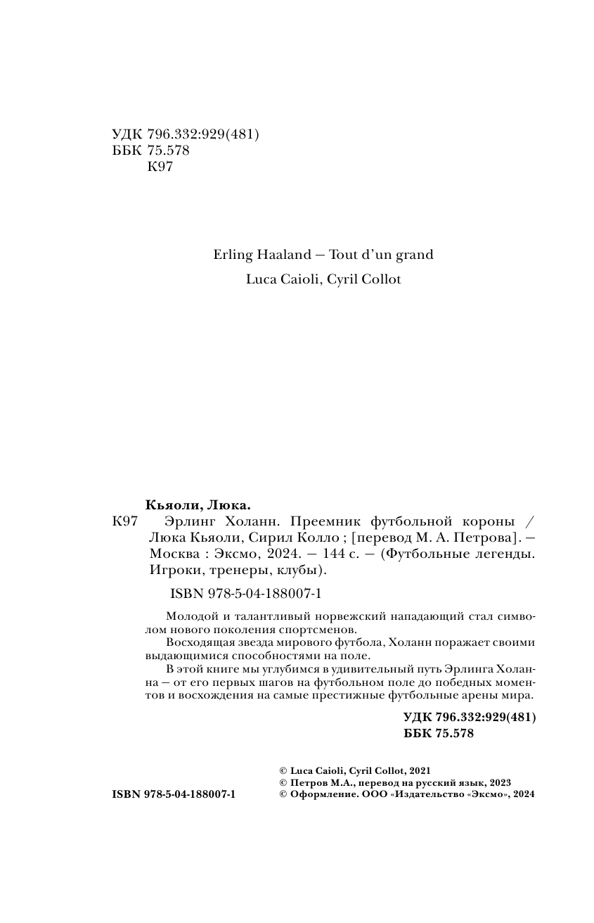 Эрлинг Холанн. Преемник футбольной короны (Кайоли Лука, Колло Сирил); ООО "Издательство "Эксмо", 2023