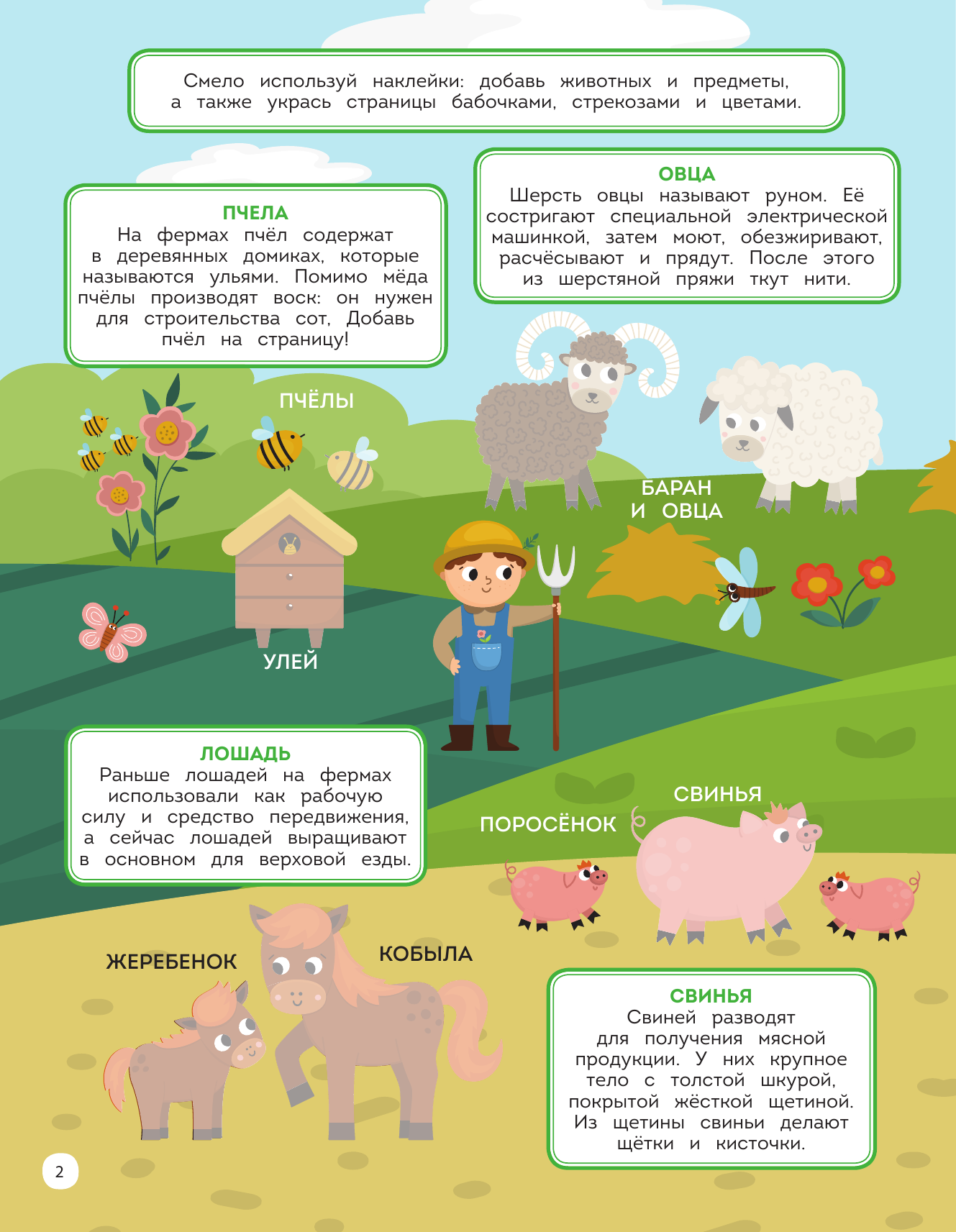 Отправляйся в гости к фермеру и познакомься с самыми милыми (и полезными!) зверушками! Ты узнаешь, какие животные живут на ферме, какие машины-помощники помогают их хозяину, пройдешь запутанный лабиринт, окажешься на фермерской ярмарке…