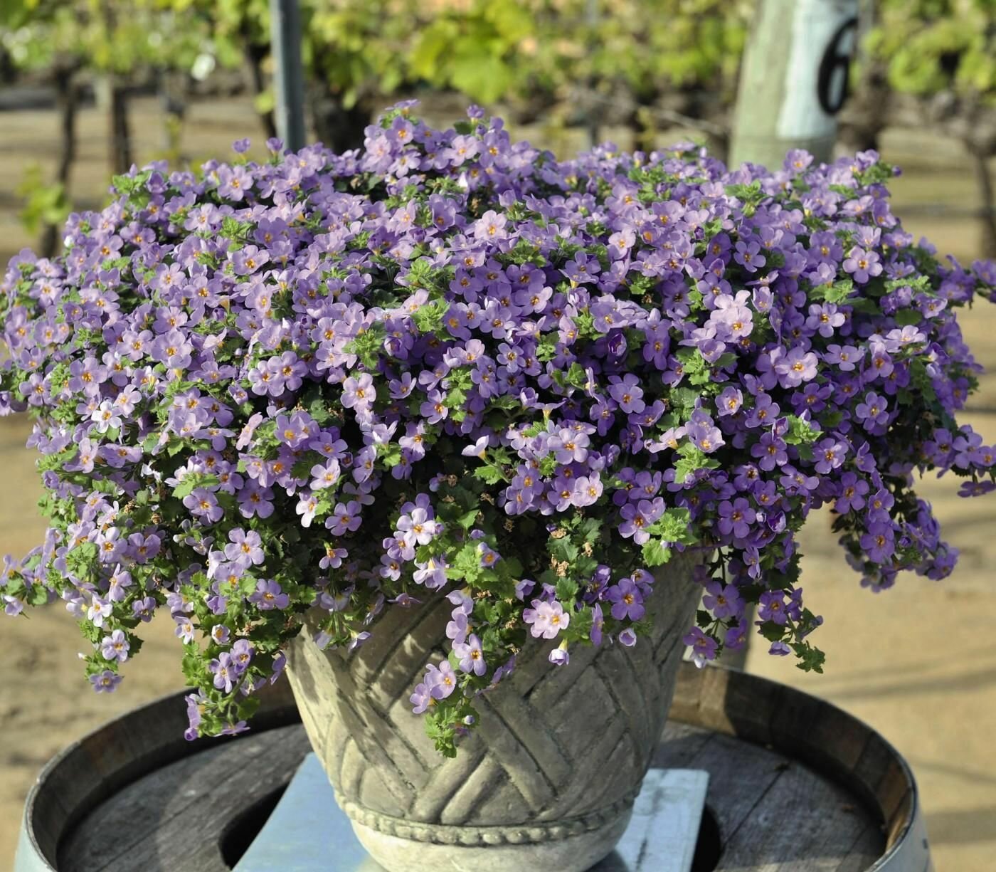 Стелющиеся или ниспадающие побеги длиной 60-80 см при должном уходе полностью покрыты небольшими яркими цветками. Волнами цветет непрерывно весь сезон. Настоящая находка для кашпо и контейнеров! Не требует удаления отцветших цветков. Пригодна для использования в качестве почвопокровного растения.