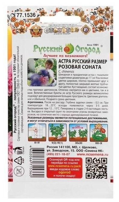 На сегодняшний день товар «Астра Розовая соната Русский размер Русский огород» можно купить с кешбеком в 1 магазине: Яндекс.Маркет