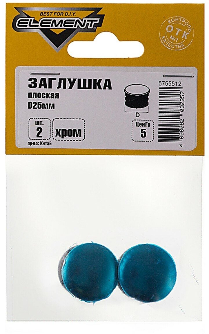 Заглушка плоская Element d 25мм хром 2 шт Tech-Krep 127430
