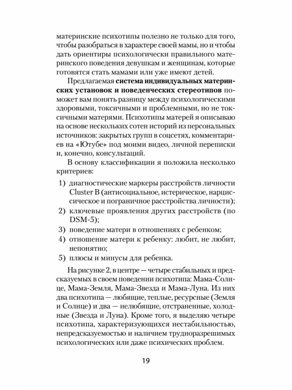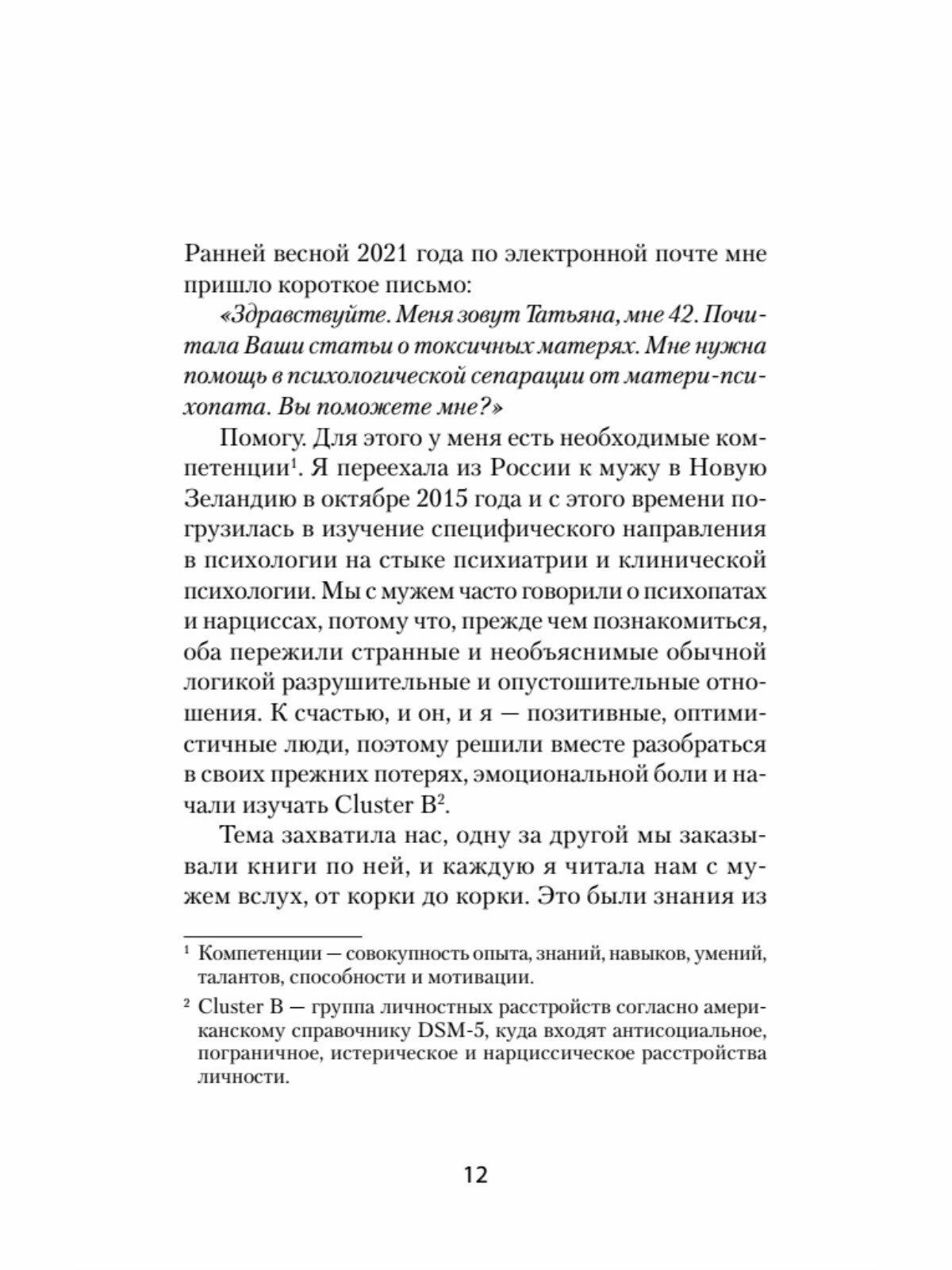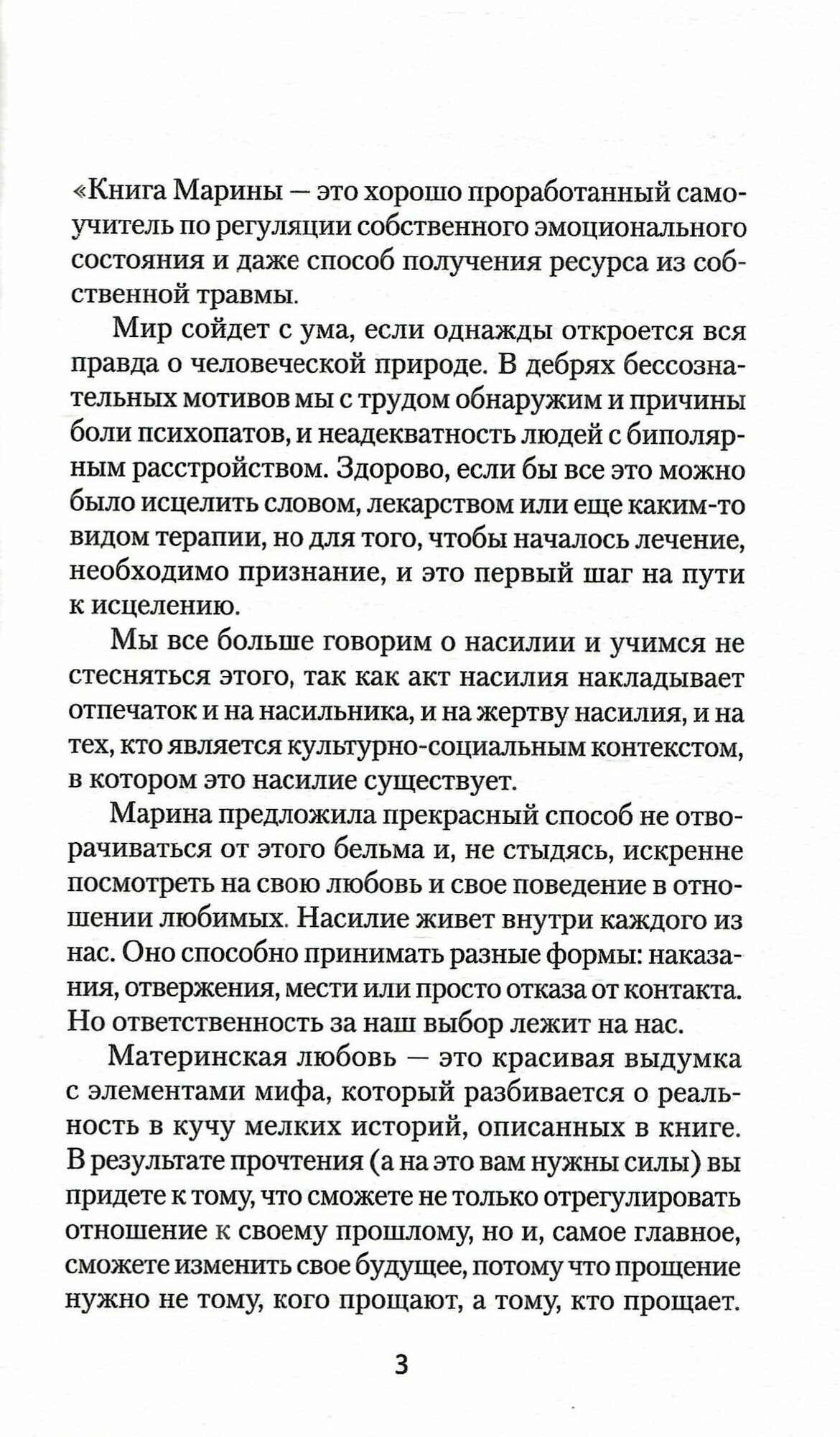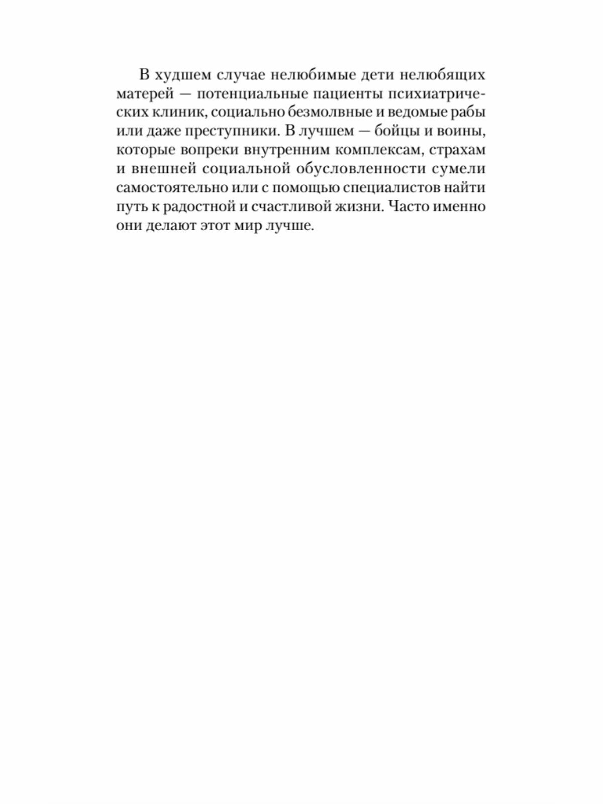 Человек, у которого была любящая мама, никогда не поймет того, кто побывал в концлагере материнского насилия: эмоционального, ментального, физического и даже сексуального. Да и сами взрослые дети таких матерей всю жизнь живут с клеймом жертвы в состоянии фрустрации и когнитивного диссонанса: «За что она так со мной?», «В чем моя вина?». Автор книги, профессиональный психолог, специализирующийся в гештальт- и когнитивно-поведенческой терапии, щедро делится опытом из своей практики консультирования и психологической поддержки. Объяснение причин токсичного поведения нелюбящих матерей иллюстрируются живыми примерами. Уникальный авторский подход и упражнения в каждой главе помогут читателям существенно облегчить свою эмоциональную боль и сориентируют как жить дальше полной и радостной жизнью.