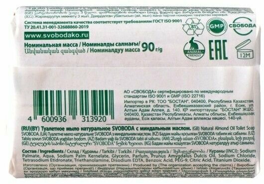 Сервис сравнения цен СкидкаГИД предлагает сравнить цены на товар «Натуральное мыло Svoboda Natural с миндальным маслом 90 г Свобода»