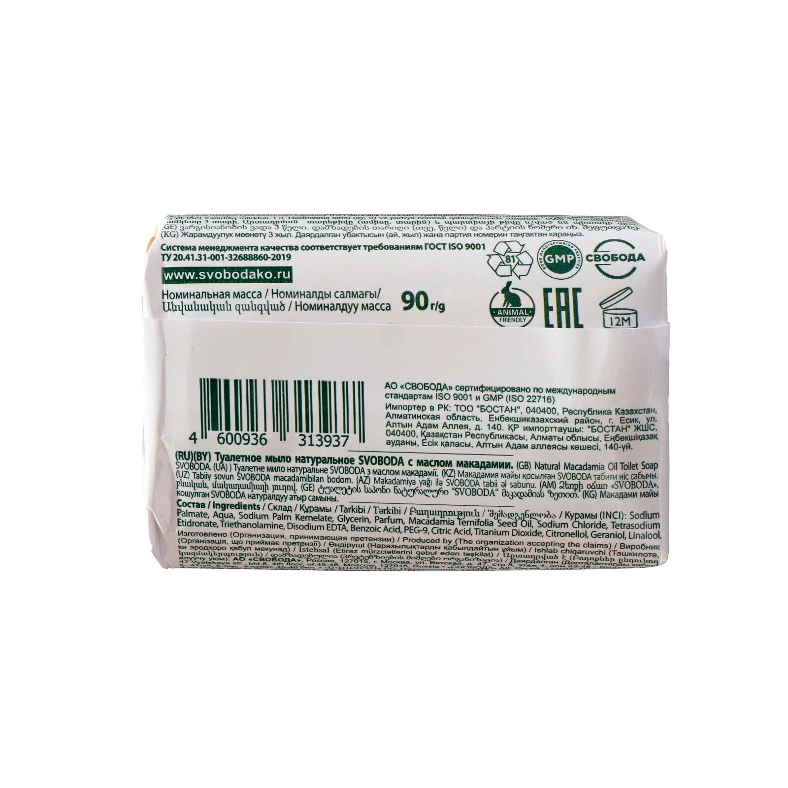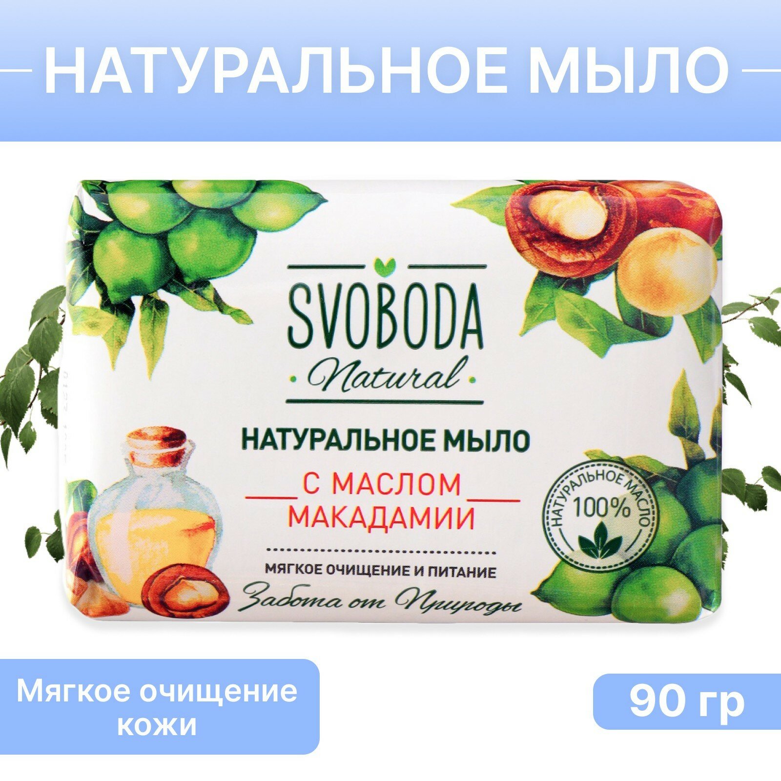 Натуральное мыло Svoboda Natural с маслом макадамии 90 г Свобода