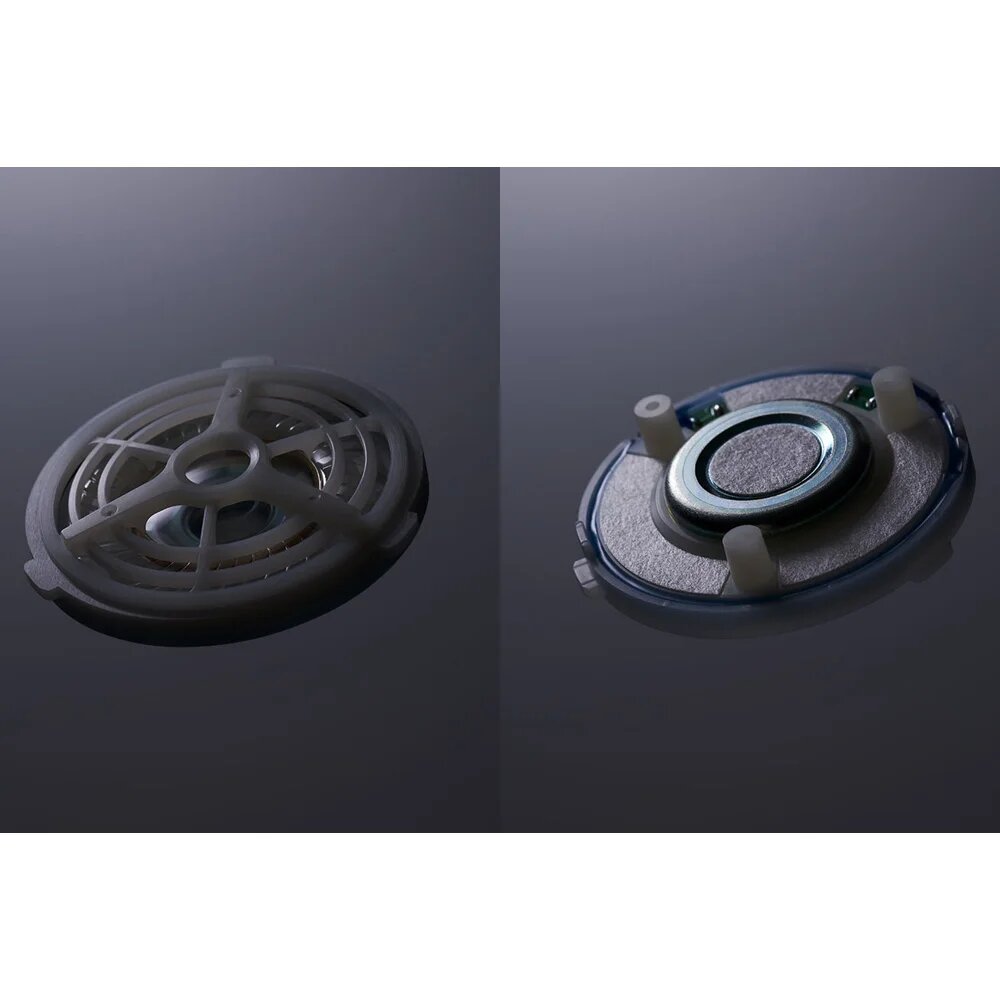 При воспроизведении источников пространственного звука через наушники звуковое поле воспроизводится виртуально за счет обработки сигнала, учитывающей HRTF (функцию моделирования восприятия звука) для пространственной информации источника звука. Благодаря акустической конструкции с открытой задней частью, которая не создает акустических преград для корпуса, отраженный звук внутри наушников уменьшается, обеспечивая более точное воспроизведение звукового поля. Кроме того, для оптимального управления воздушным потоком спереди и сзади динамика акустический резистор используется на максимально большой площади для устранения пространственного резонанса. Обеспечивает естественное и насыщенное воспроизведение низких частот без окрашивания.