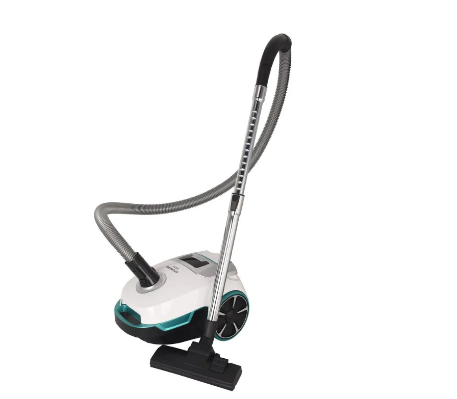 Hyundai – это компактный и экономичный пылесос, обладающий 800 Вт мощности. При этом на всасывание у девайса отведено 250 Вт. Их вполне хватает, чтобы убирать любой мусор, даже крупный и плотный. Мощность устройства варьируется нажатиями на две кнопки, расположенные на верхней части его пластикового корпуса. Материал был выбран неслучайно, он обладает высокой надежностью, прочностью и небольшим весом. Благодаря этому и наличию пары больших колес, а также эргономичной рукоятки данную модель легко перемещать по любой ровной поверхности. Даже на максимальных значениях данная модель работает тихо – на уровне 72 дБ.