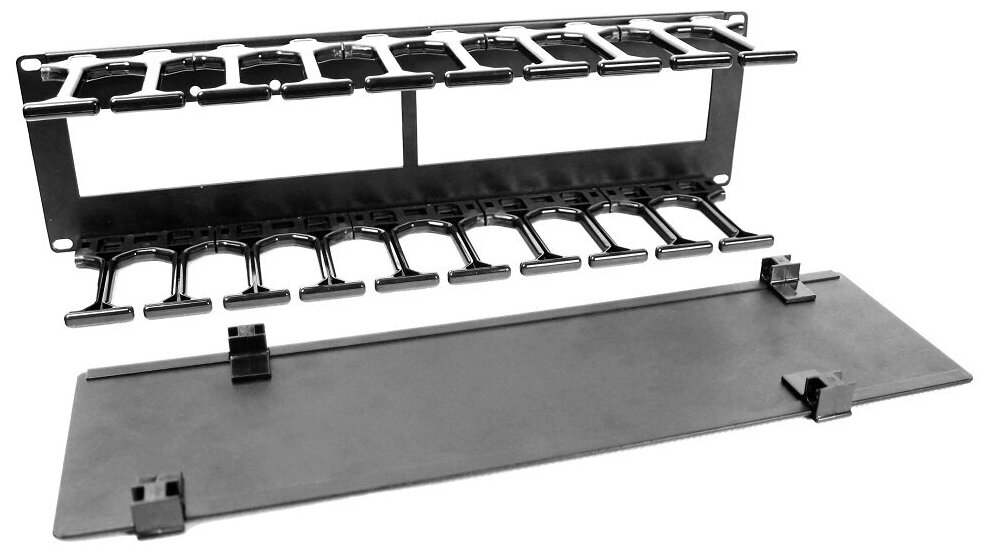 Горизонтальный кабельный органайзер с пластиковыми “пальцами” и металлической крышкой на защёлках предназначен для удобной организации коммутационного кабеля в шкафах. Крышка с защёлкивающимися петлями обеспечивает легкий доступ к кабелю, а гладкие пластиковые штифты правильный радиус изгиба. Высота органайзера 2U.