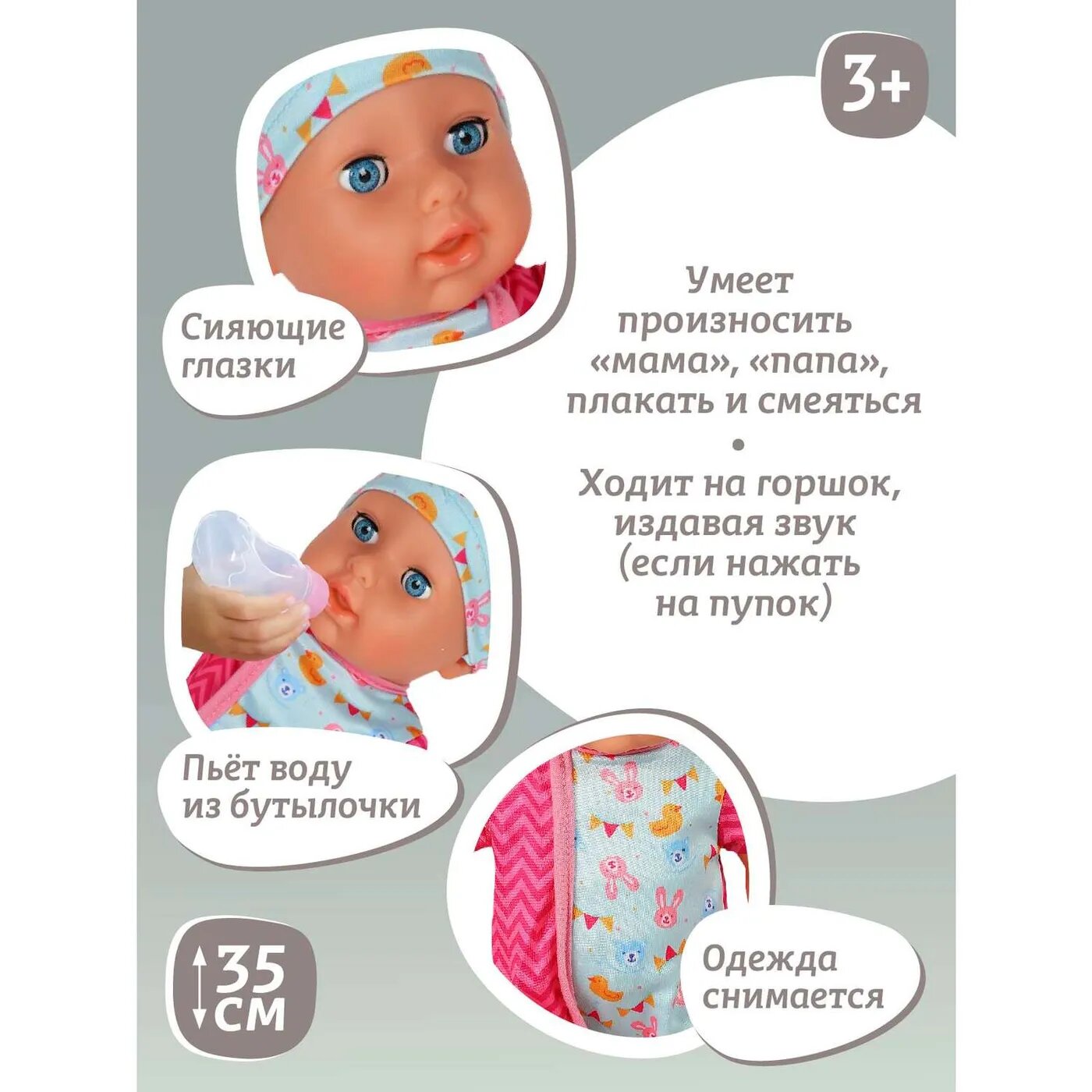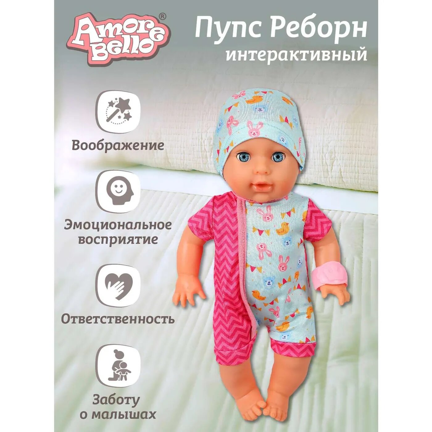 Интерактивный пупс торговой марки "Amore Bello" станет отличным подарком для ребенка, ведь он так сильно похож на настоящего малыша, а еще обладает множеством игровых возможностей. Игра с такой функциональной куклой научит малышку ответственности, заботе о младших, позволит лучше понимать свои эмоции, а также почувствовать себя в роли заботливой мамы или врача.У пупса реалистичный внешний вид, он имеет правильные пропорции тела, умеет сидеть, ножки и ручки двигаются. Милые черты лица, большие глаза, которые закрываются в горизонтальном положении, длинные ресницы, красивая одежда обязательно понравятся маленькой принцессе. Озвученный пупс реагирует на прикосновения, умеет произносить фразы "мама", "папа", а также плакать и смеяться, капризничать и сопеть. Также он умеет пить водичку из бутылочки и писать после этого в горшок.