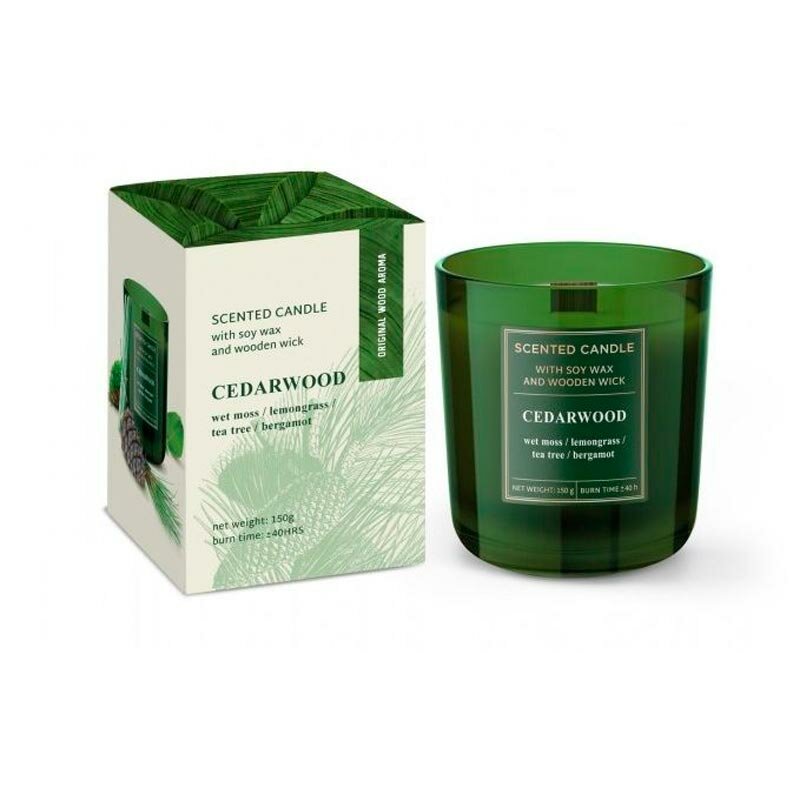 Свеча ароматизированная в стакане Bartek candles Древесина с деревянным фитилем и соевым воском, 8х11,5 см. Это коллекция деревянных свечей - сочетание волшебства пламя и два восхитительных древесных аромата. Пламя от деревянного фитиля создает волшебную атмосферу. Иногда он искрится и шипит, как дрова. Сандаловое дерево - таинственный, древесный аромат ладана , известный как афродизиак. Интенсивный, возбуждающий чувства. В нашей изысканной композиции он сочетается со свежестью зеленых листьев и едва уловимыми ароматами пачули и ветивера. Мы дополнили все это щепоткой зеленого перца. Кедровое дерево-Сладкий, теплый, древесный аромат. В ароматерапии это описывается как успокаивающее и помогающее очистить разум. Чрезвычайно утонченным образом в сочетании с ароматическими нотами бергамота, лемонграсса и чайного дерева, которые снимают напряженность между основными нотами, мы закрыли непостоянство запаха влажного мха. Идеально, когда вы хотите расслабиться. Время горения 40 часов.
