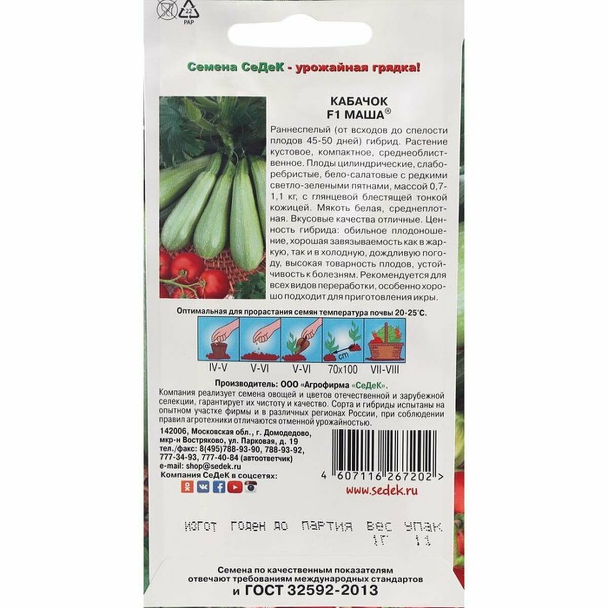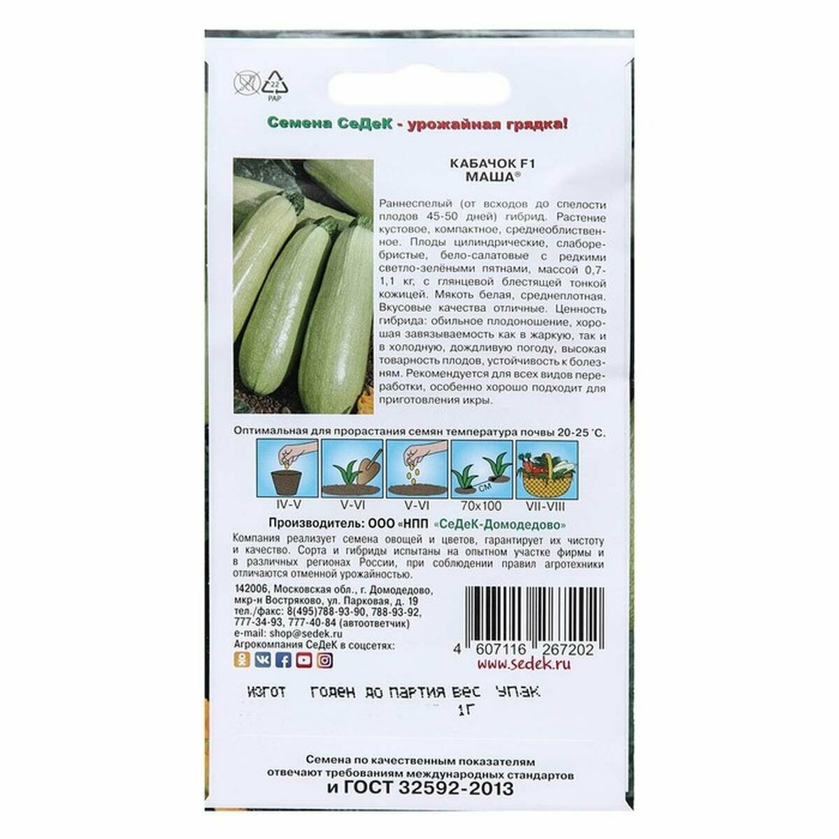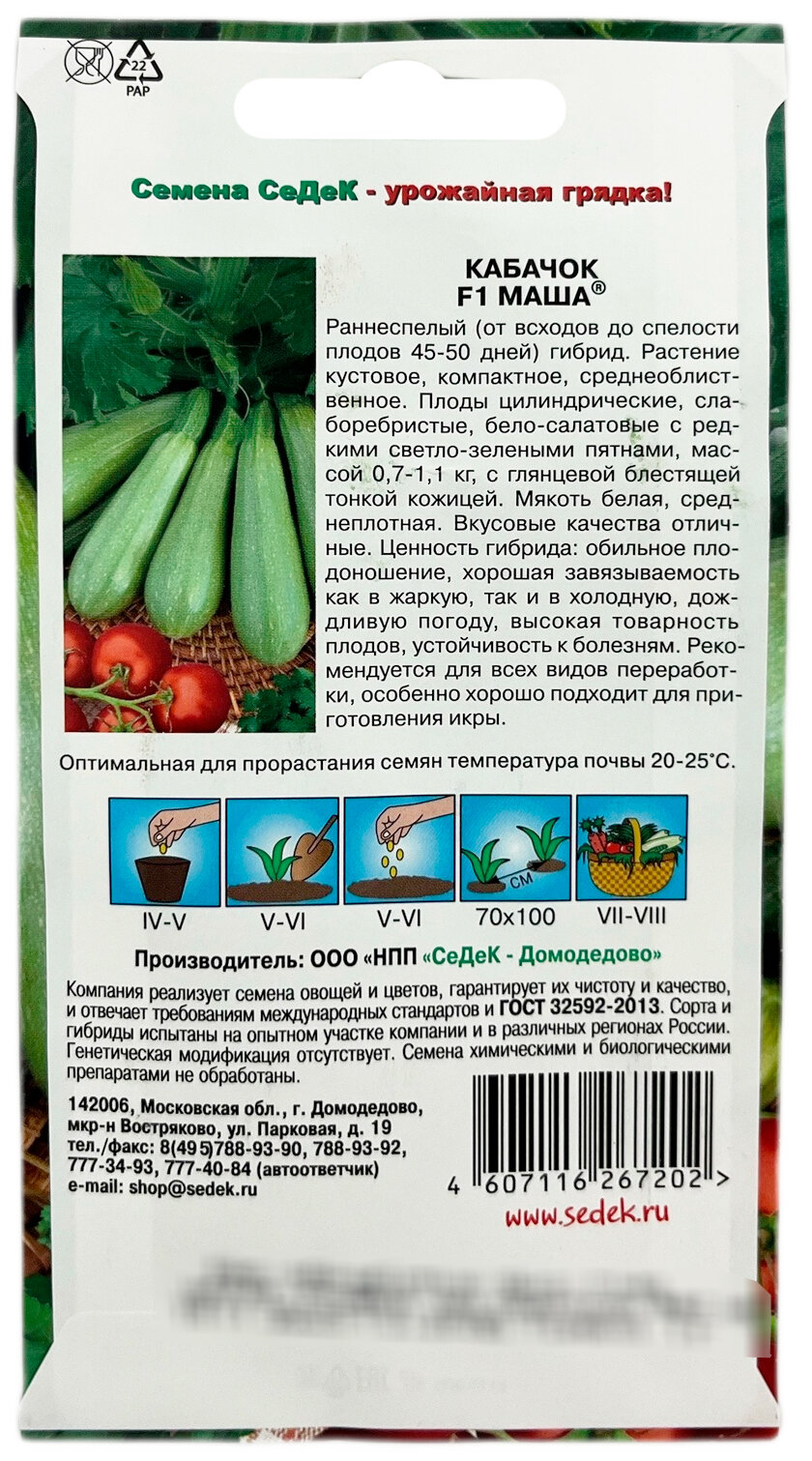 Кабачок Маша F1 СеДек
