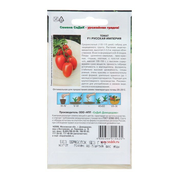 - Семена томатов от фирмы Седек. Томат Русская империя F1. Очень урожайные сорта томатов.