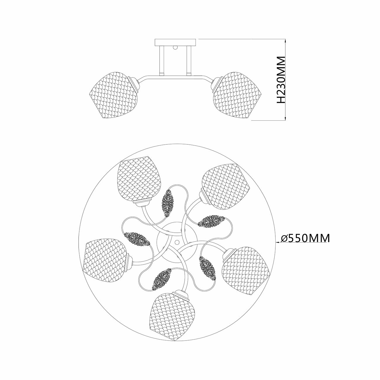 Потолочный светильник Escada E27*40W Chrome - стильное и функциональное решение для освещения различных помещений.Светильник выполнен в современном и модерном стиле, что позволяет ему гармонично вписаться в любой интерьер. Арматура и плафоны изготовлены из металла и стекла соответственно, что обеспечивает прочность и долговечность конструкции.Светильник оснащен пятью лампочками с типом цоколя E27 и мощностью 40 Вт каждая. Это позволяет обеспечить яркое и равномерное освещение площади до 10 квадратных метров.Светильник имеет класс электробезопасности I и степень пылевлагозащиты IP20, что гарантирует безопасность использования в домашних условиях. Монтажная пластина обеспечивает надежное крепление светильника на потолке.Управление светильником осуществляется механическим способом, что делает его удобным и простым в использовании.Escada E27*40W Chrome подходит для использования в различных помещениях, таких как прихожая, кабинет, спальня и гости