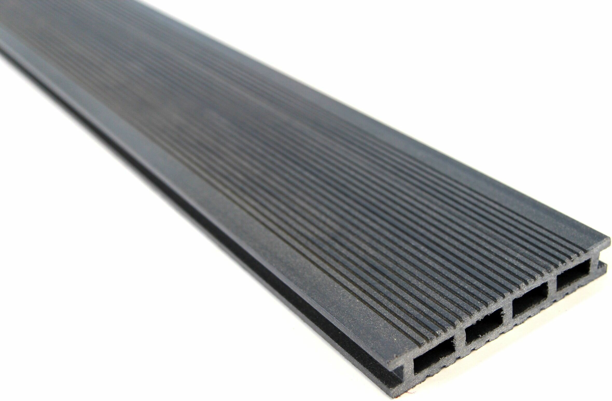 Доска террасная MultiDeck Кварц - композитный материал, состоящий из древесной муки, первичного полиэтилена и функциональных добавок. С одной стороны декинг имеет продольное рифление, с другой - выполнено тиснение под дерево. Экологичная, влагостойкая полимерная доска легко монтируется, долго служит, не требует тщательного ухода, по износостойкости и прочности в несколько раз превосходит массив дерева.