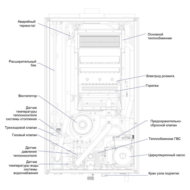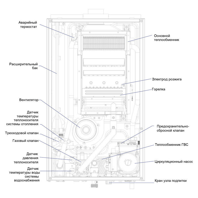 - Компактный двухконтурный газовый котёл с закрытой камерой сгорания.