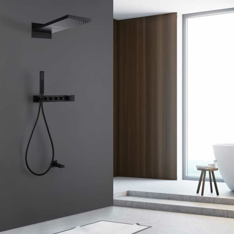 Встраиваемая душевая система Abber Rund AF8753B черная матовая, с термостатом, с изливом для ванны