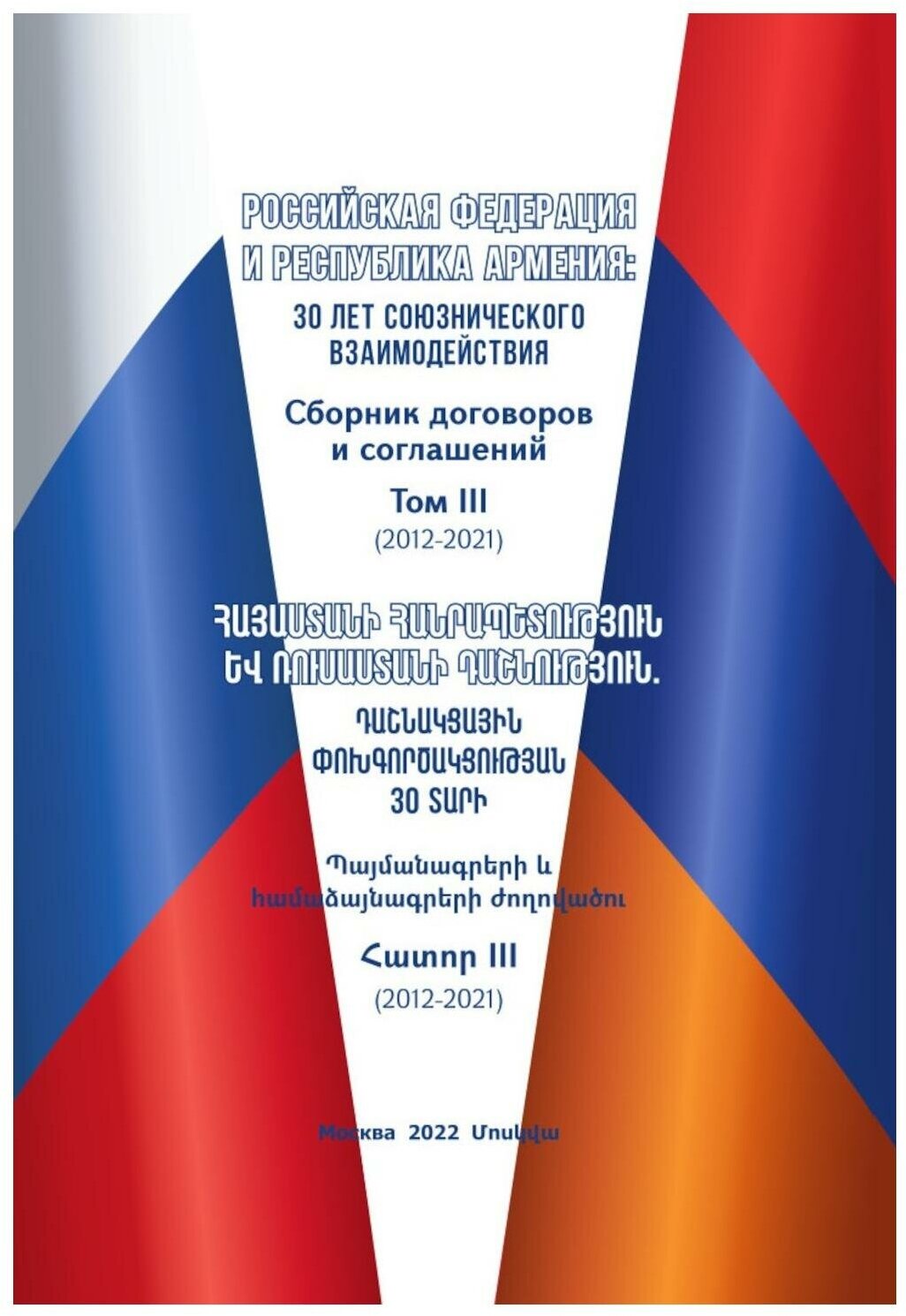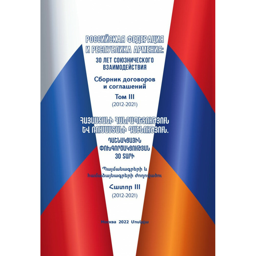 Сборник договоров и соглашений. Т. 2 (2002-2011) на русс.и армян.яз»: Настоящий трехтомный сборник составлен и издан по случаю тридцатилетия установления дипломатических отношений между Российской Федерацией и Республикой Армения. В сборник вошли тексты основных двусторонних документов между Российской Федерацией и Республикой Армения в период с 1992 по 2021 гг. на русском и армянском языках. Сборник составлен усилиями представителей Четвертого департамента стран СНГ- МИД Российской Федерации, Посольства Республики Армения в Москве и Общественной организации «ДИАЛОГ». Он издан при содействии «Дома русской книги» в Ереване.