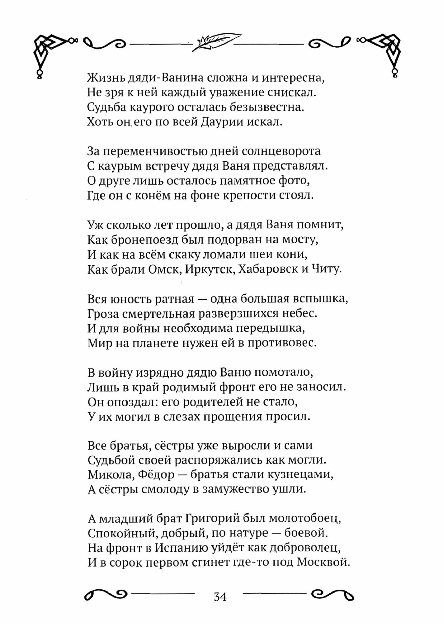 «Солдатская баллада о войне» - произведение, основанное на исторических событиях девятнадцатого и двадцатого столетий, литературными героями которого являются реальные участники, прошедшие горнила войн, с их невыдуманными человеческими историями. Кроме того, в сборник вошли некоторые ранее не опубликованные стихотворения о войне.
