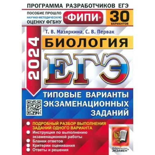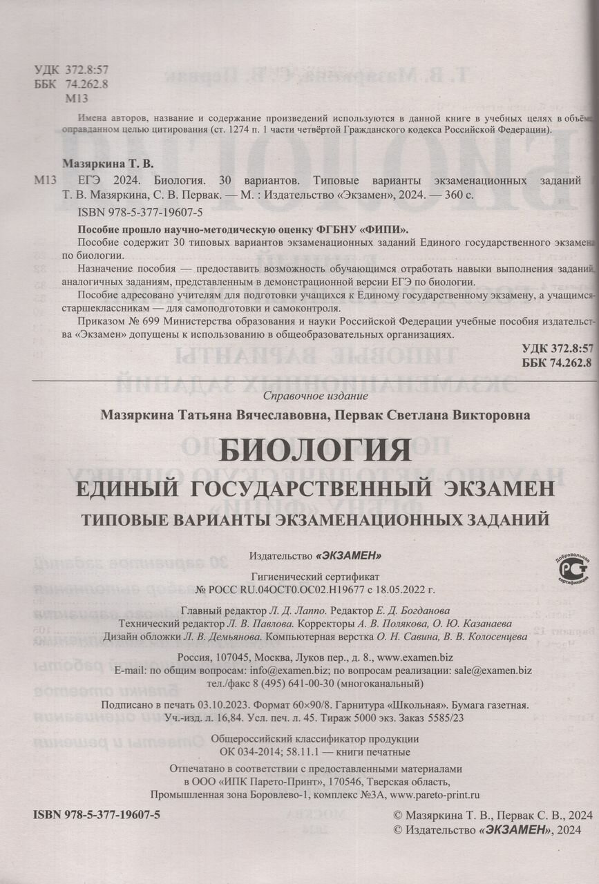 ЕГЭ-2024. Биология. Типовые варианты экзаменационных заданий. 30 вариантов заданий (Мазяркина Татьяна Вячеславовна, Первак Светлана Викторовна); Экзамен, 2024