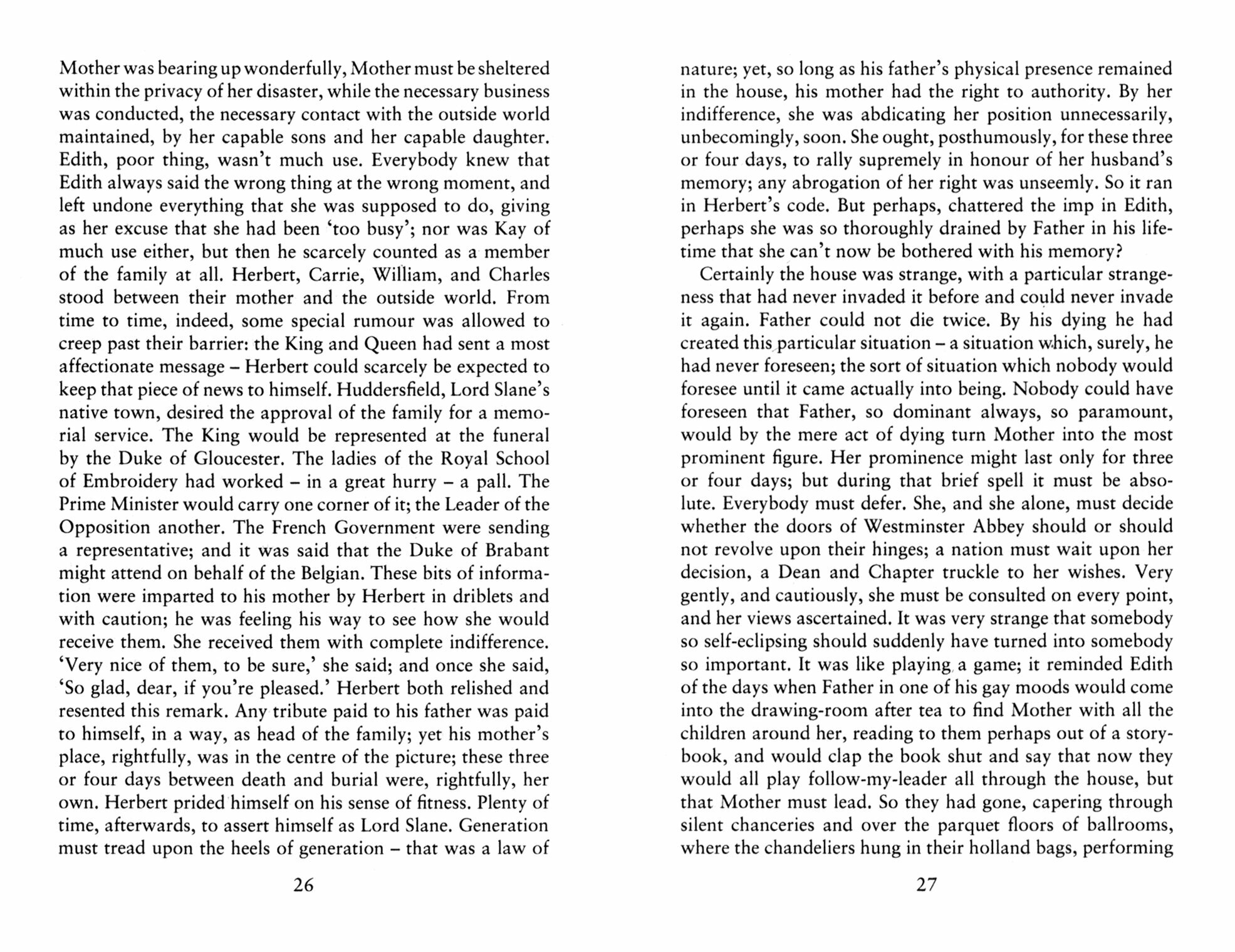 When the great statesman Lord Slane dies, everyone assumes his dutiful wife will slowly fade away, the paying guest of each of her six children. But Lady Slane surprises everyone by escaping to a rented house in Hampstead where she revels in her new freedom, revives youthful ambitions and gathers some very unsuitable companions. Irreverent, entertaining and insightful, this is a tale of the unexpected joys of growing older.