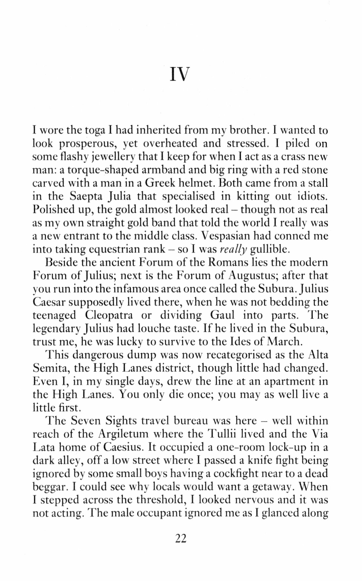Joining the rest of the married couple's tour group on the remains of their Grand Tour, Falco and Helena seize the opportunity to interview the owner/manager of 'Seven Sights Travel', as well as the other guests.