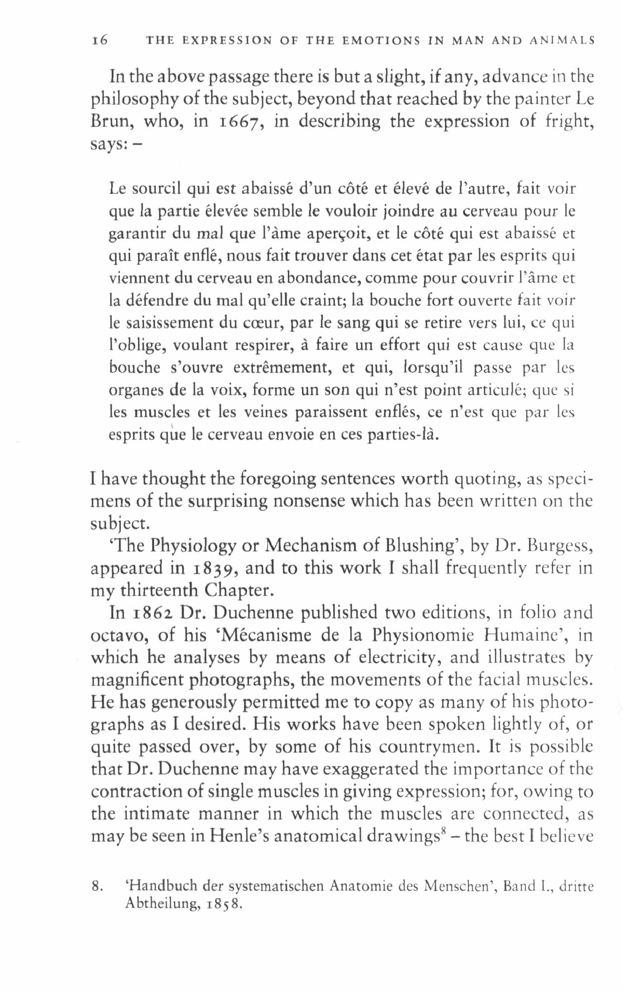 Published in 1872, The Expression of the Emotions in Man and Animals was a book at the very heart of Darwin's research interests - a central pillar of his 'human' series. This book engaged some of the hardest questions in the evolution debate, and it showed the ever-cautious Darwin at his boldest. If Darwin had one goal with Expression, it was to demonstrate the power of his theories for explaining the origin of our most cherished human qualities: morality and intellect. As Darwin explained, "He who admits, on general grounds, that the structure and habits of all animals have been gradually evolved, will look at the whole subject of Expression in a new and interesting light."
