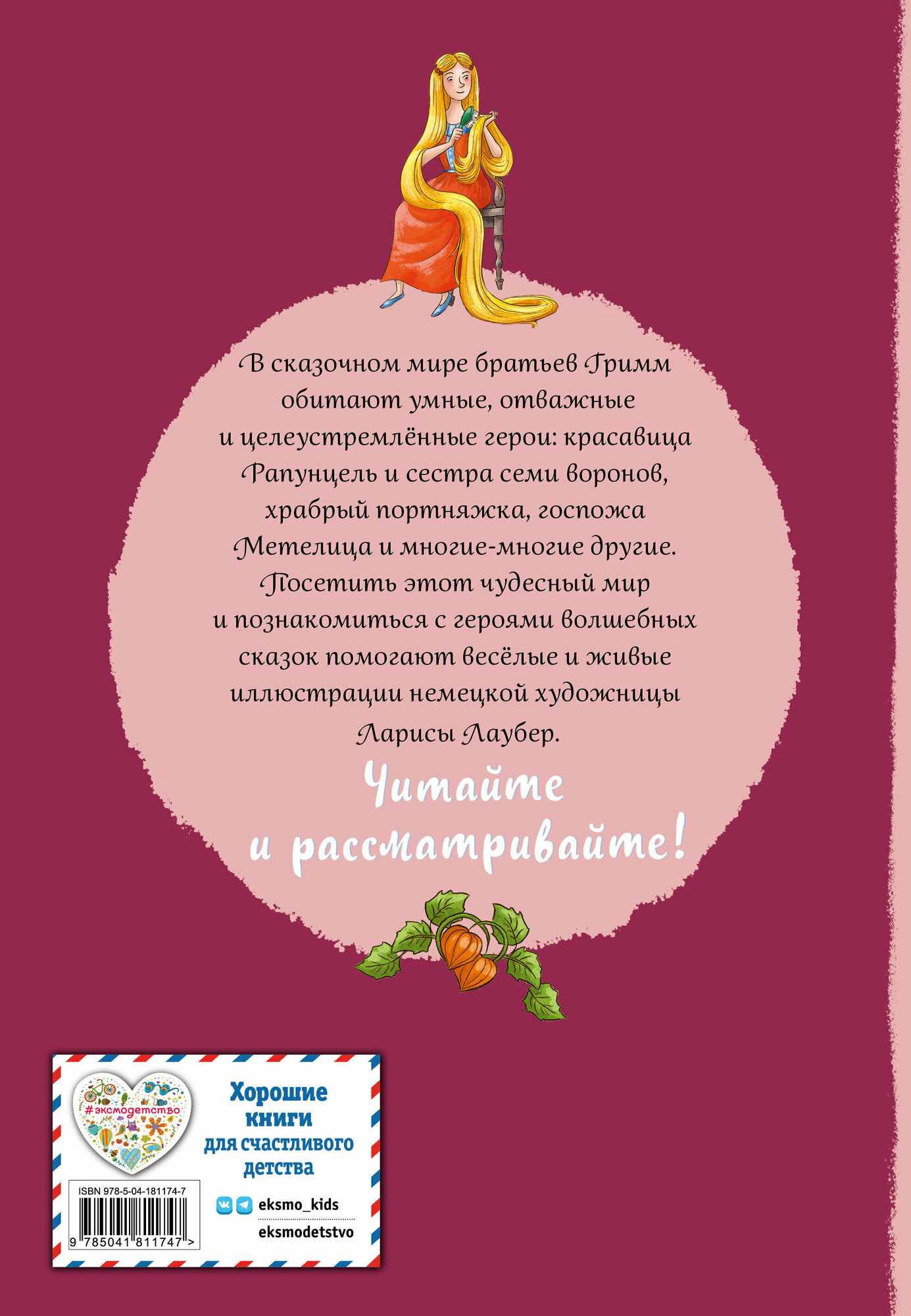 В сборник вошли 11 известных сказок Вильгельма и Якоба Гриммов: "Золушка", "Гензель и Греттель", "Рапунцель", "Госпожа Метелица" и другие. Иллюстрации Ларисы Лаубер.