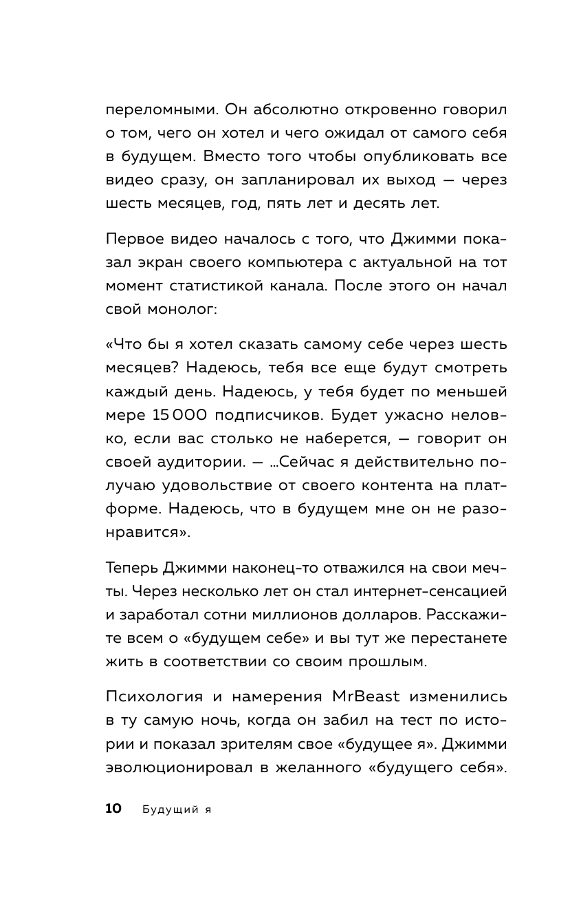 Автор книги — Бенжамин Харди, доктор философии, психолог и автор бестселлера «Сила воли не работает», считает, что помочь в этом могут регулярные послания самому себе из настоящего в будущее.
