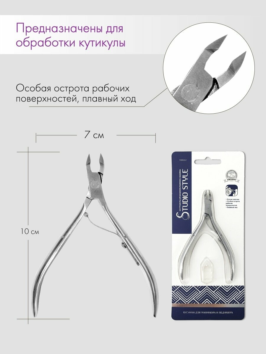 Кусачки Studio Style 58602-7773 - это профессиональный инструмент для маникюра и педикюра, который станет незаменимым помощником в уходе за ногтями.Изготовлены из нержавеющей стали, эти кусачки обеспечивают долгий срок службы и сохраняют свои режущие свойства даже при ежедневном использовании.Одинарная пружина обеспечивает плавное и точное движение инструмента, что позволяет аккуратно и без усилий удалить кутикулу и заусенцы.Ручная заточка гарантирует остроту и точность режущей кромки, что позволяет избежать порезов и обеспечивает комфортное использование.Длина режущей кромки составляет 5.0 см, что делает кусачки удобными для работы с разными типами ногтей.Продукт произведен в Китае компанией ZHUOER GIFTS INDUSTRIAL CO, LTD, которая зарекомендовала себя на рынке как надежный производитель инструментов для маникюра и педикюра.Кусачки Studio Style 58602-7773 упакованы в блистер, что обеспечивает их сохранность и удобство хранения.Выбирая кусачки Studio Style 58602-7773, вы получаете надежный и качественный инструмент для ухода за ногтями, который прослужит вам долгое время и обеспечит комфорт и безопасность при использовании.