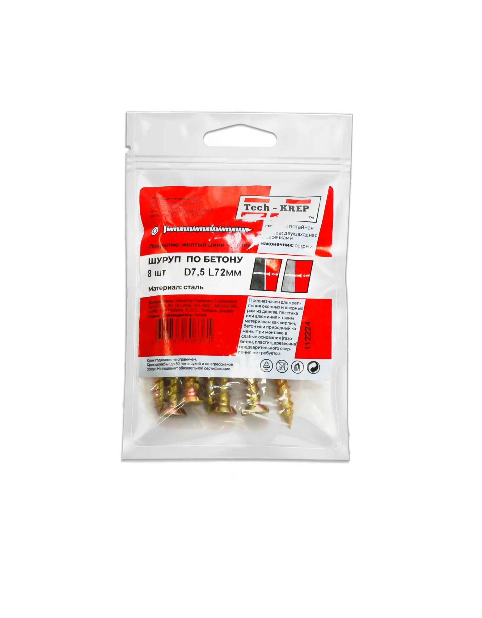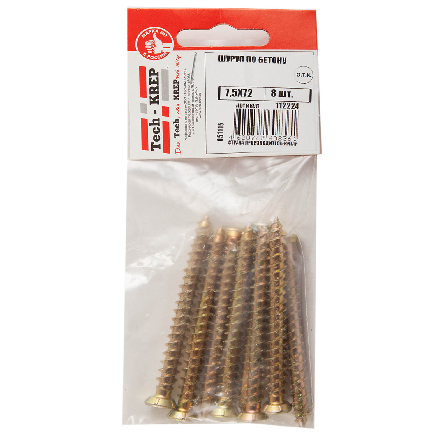 Шуруп по бетону Tech-Krep 75x72 8 шт в пакете Невский крепеж