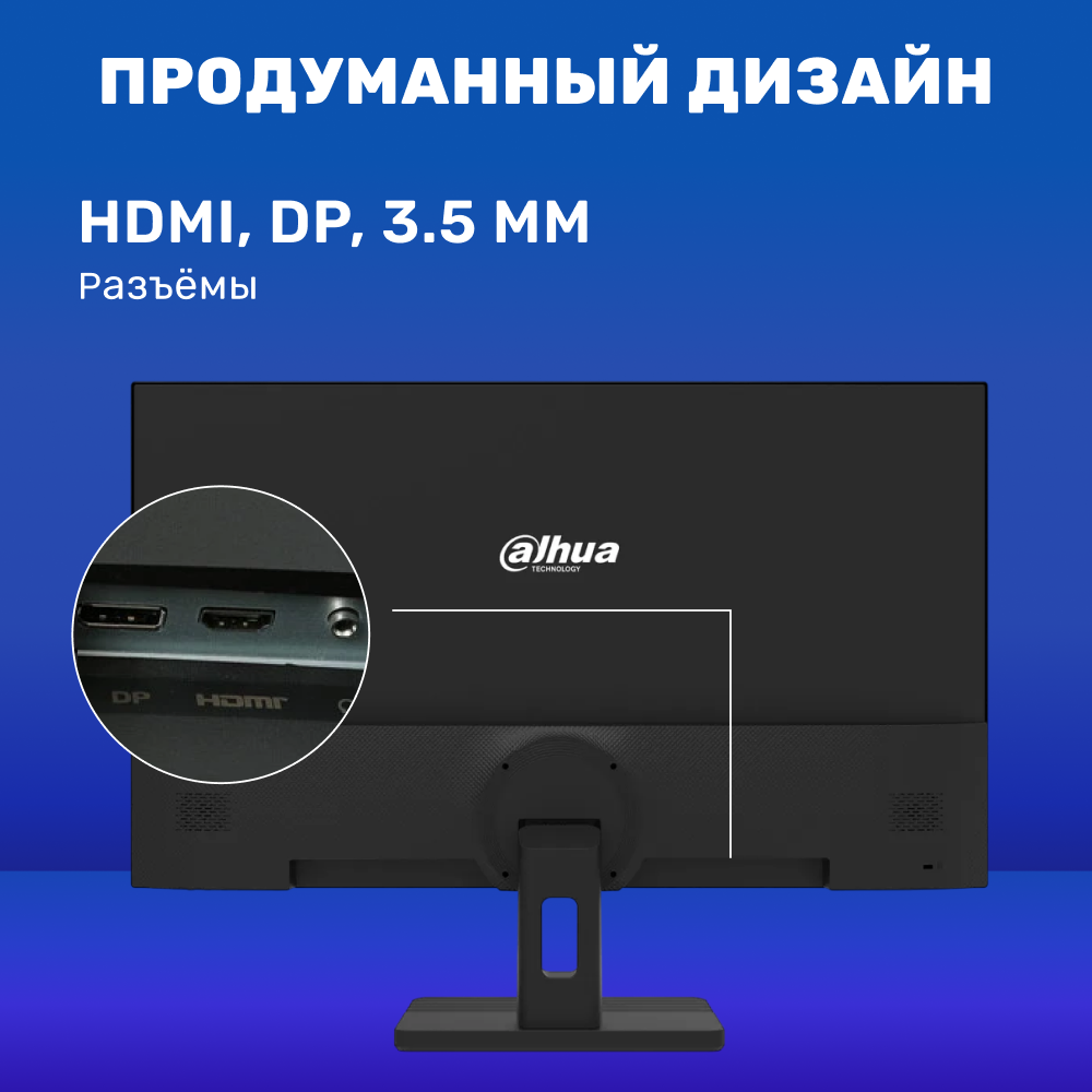 Монитор Dahua с 23.8-дюймовым экраном, облаченным в тонкий корпус лаконичного черного цвета, может похвастаться высокочетким разрешением 1920x1080 пикселей, благодаря которым демонстрируемое на нем изображение будет выглядеть просто потрясающе. Модель станет оптимальным приобретением как для домашнего использования, так и для работы за ее экраном в офисе.