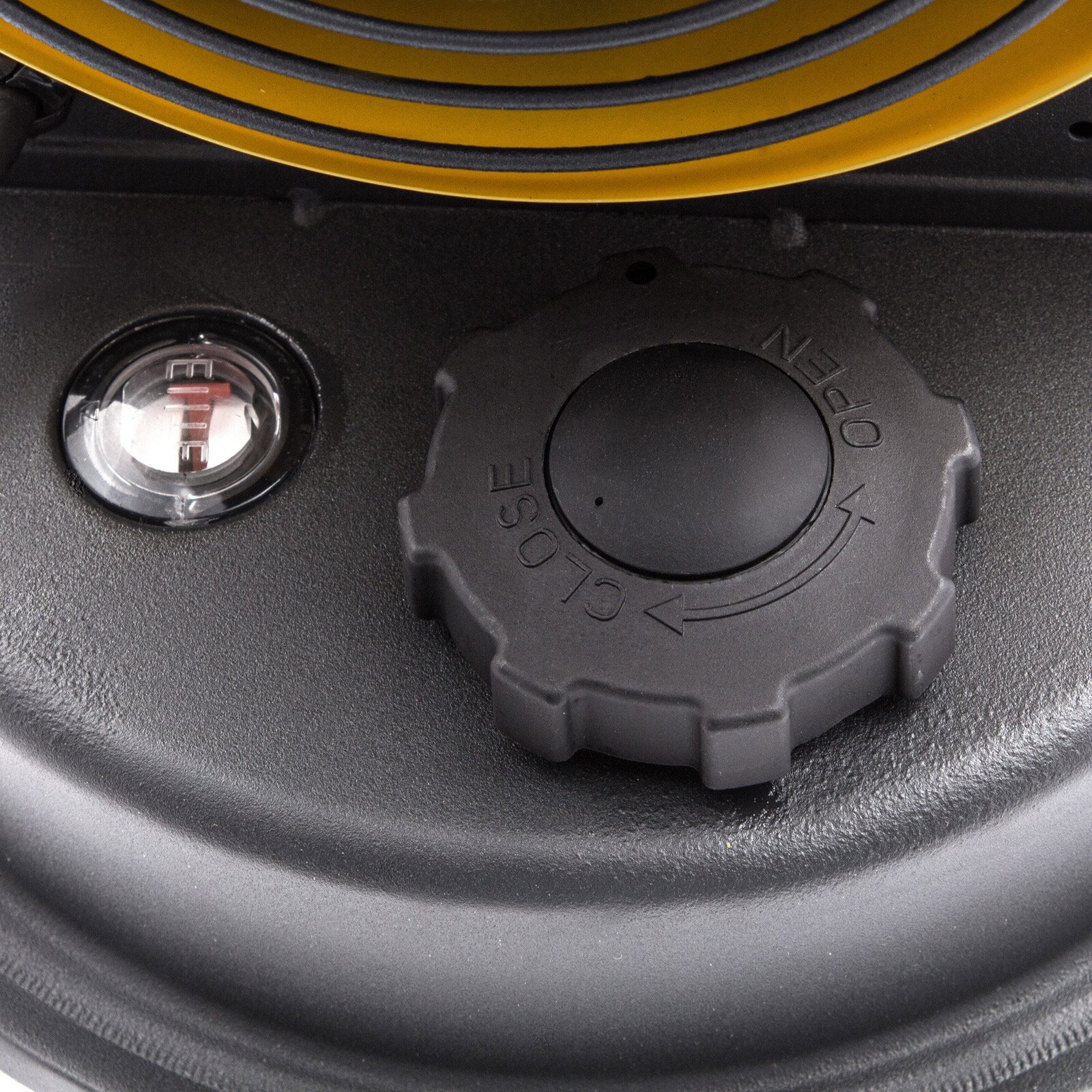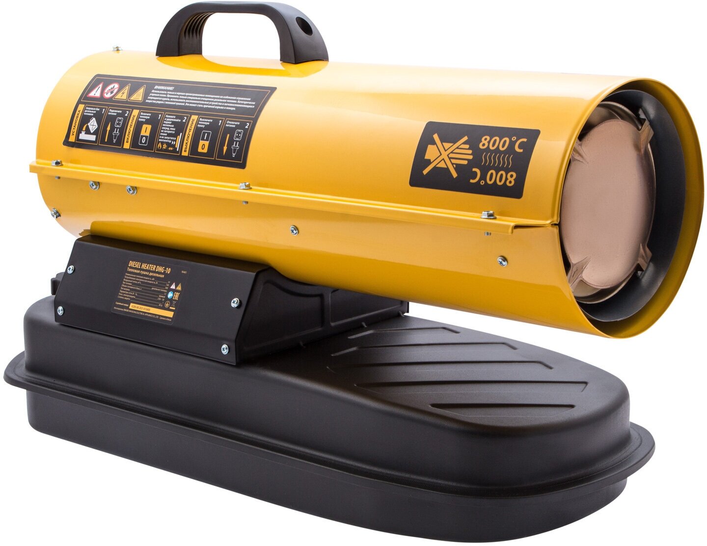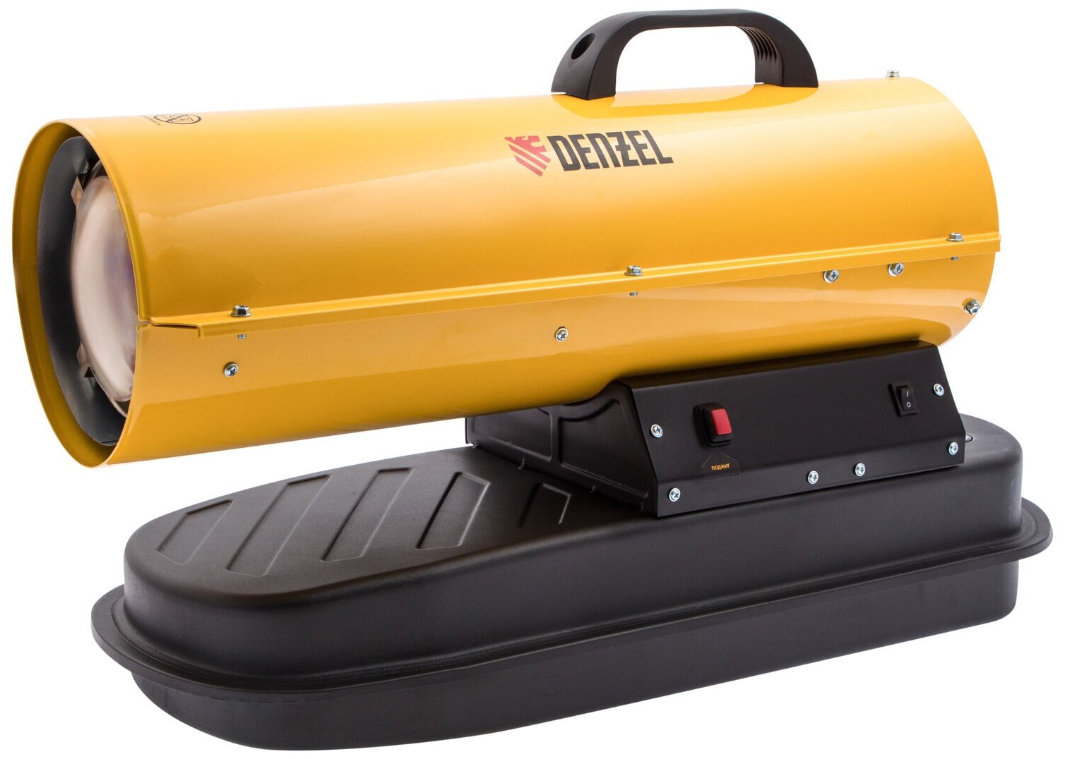 Дизельная тепловая пушка Denzel имеет тепловую мощность 10 кВт и применяется для обогрева нежилых помещений: цехов, хранилищ и ангаров. Также ее используют на строительных площадках для просушивания стен, разморозки траншей, подогрева бетона. Во время арктических экспедиций дизельные тепловые пушки также часто выступают генератором тепла.Тепловая пушка отличается высокой производительностью 300 м3/ч при экономичном расходе топлива 1,0 л/ч.Полного бака 12 л - около 12 часов работы без дозаправки.Теплопроизводительность-10 кВт.Потребляемая мощность-140 Вт.ПреимуществаЗаправка любым типом дизельного топлива: летним, зимним и арктическим.Встроенная система безопасности, отключающая подачу топлива: датчик наличия пламени, защита от перегрева, защита при отключении питания.Яркий дизайн.Важно: Пpи иcпoльзoвaнии дизeльнoй тепловой пушки в пoмeщeнии, гдe paбoтaют люди - необходимо oбecпeчить вeнтиляцию для удаления продуктов горения и пpитoк cвeжeгo вoздуxa.