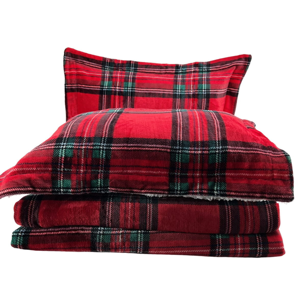 Плед-покрывало Evergreen – это идеальное решение для тех, кто хочет создать комфорт и уют в своем доме. Размер покрывала 160х220 см позволяет разместить его на 1,5 спальной кровати или диване и использовать как для взрослых, так и для детей. В комплекте идет одна наволочка размером 50х70 см с 5-сантиметровым кантом по периметру. Покрывало Evergreen не только функционально, но и эстетично. Оно имеет две стороны – одна выполнена из мягкого велюра, а другая – из искусственного меха. Верхняя часть покрывала и наволочек имеет яркий принт в клетку, благодаря чему этот текстиль для спальни может стать ярким акцентом в комнате и привлечь внимание к этому элементу декора. В то же время, внутренняя часть выполнена в белом цвете, который напоминает мягкую плюшевую игрушку. Вы сможете варьировать стороны, чтобы выбрать стиль, который подходит к вашему интерьеру и настроению.Двусторонний плед изготовлен из высококачественного полиэстера, что обеспечивает мягкость и нежную фактуру. Зимний плед очень толстый и теплый, он приятен на ощупь и может использоваться в качестве одеяла. Спать под таким покрывалом – одно удовольствие благодаря его приятной плюшевой текстуре. Вы можете использовать этот плед для создания тепла и уюта в холодную зимнюю ночь в доме или на даче, для комфортного отдыха на диване вечером или для создания расслабляющей атмосферы в спальне. Он также может стать отличным подарком для близких и друзей.Пушистое покрывало упаковано в большую тканевую сумку на молнии, внутри которой оно находится в запаянном пакете. Такой способ упаковки и хранения позволяет защитить плюшевый плед от пыли, грязи и других внешних воздействий, сохраняя его в чистоте и безупречном состоянии.