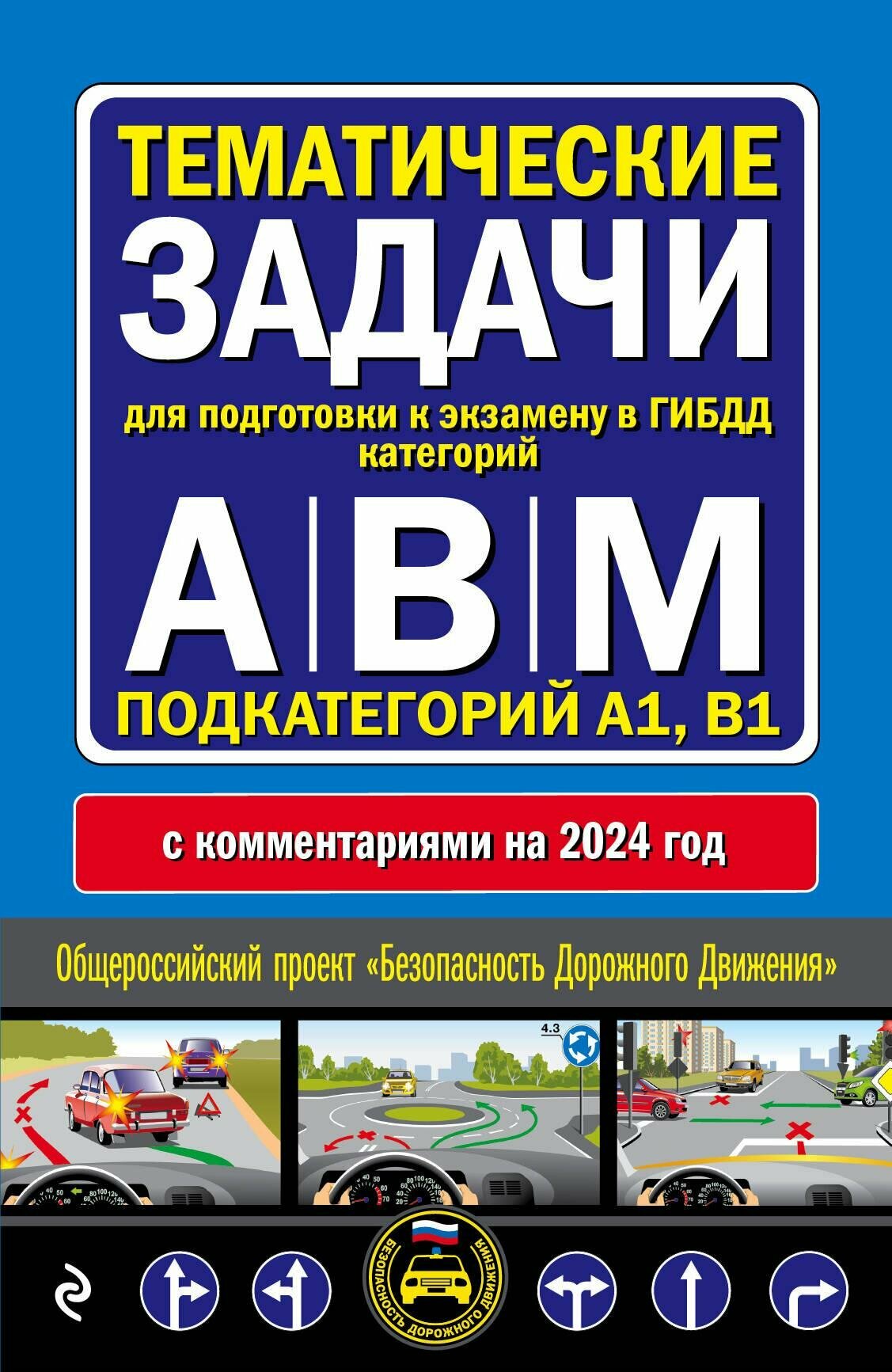 Тематические задачи для подготовки к экзамену в ГИБДД категорий А В М подкатегорий А1 В1 с комментария на 2024 год (Волнухина Д. (редактор)); ООО "Издательство "Эксмо", 2023