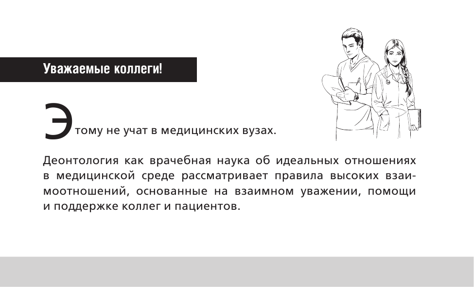 Однако сегодня, когда медицина из сферы науки переместилась в сферу услуг, когда медицинскими и научными учреждениями нередко руководят менеджеры, далекие от медицины, а пациенты приходят в медицинские учреждения не только за медицинской помощью, но и в надежде получить судебную денежную компенсацию в случае, если получится спровоцировать врача на инцидент, появилась потребность в знаниях, выходящих за рамки только медицинских. Эта книга поможет избежать ситуаций, в которых пациент сможет манипулировать врачом.