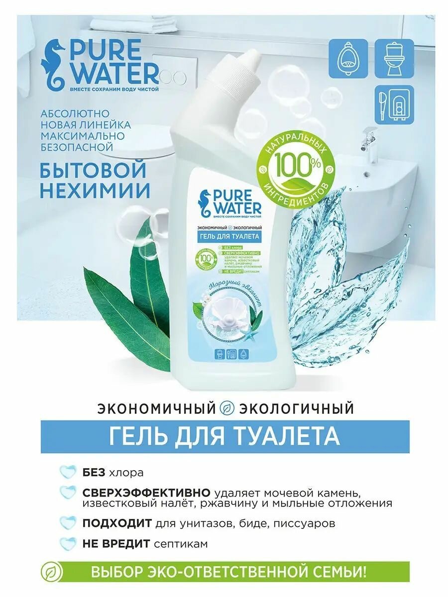 Сервис сравнения цен СкидкаГИД предлагает сравнить цены на товар «PURE WATER Гель для туалета Морозный эвкалипт 500мл»