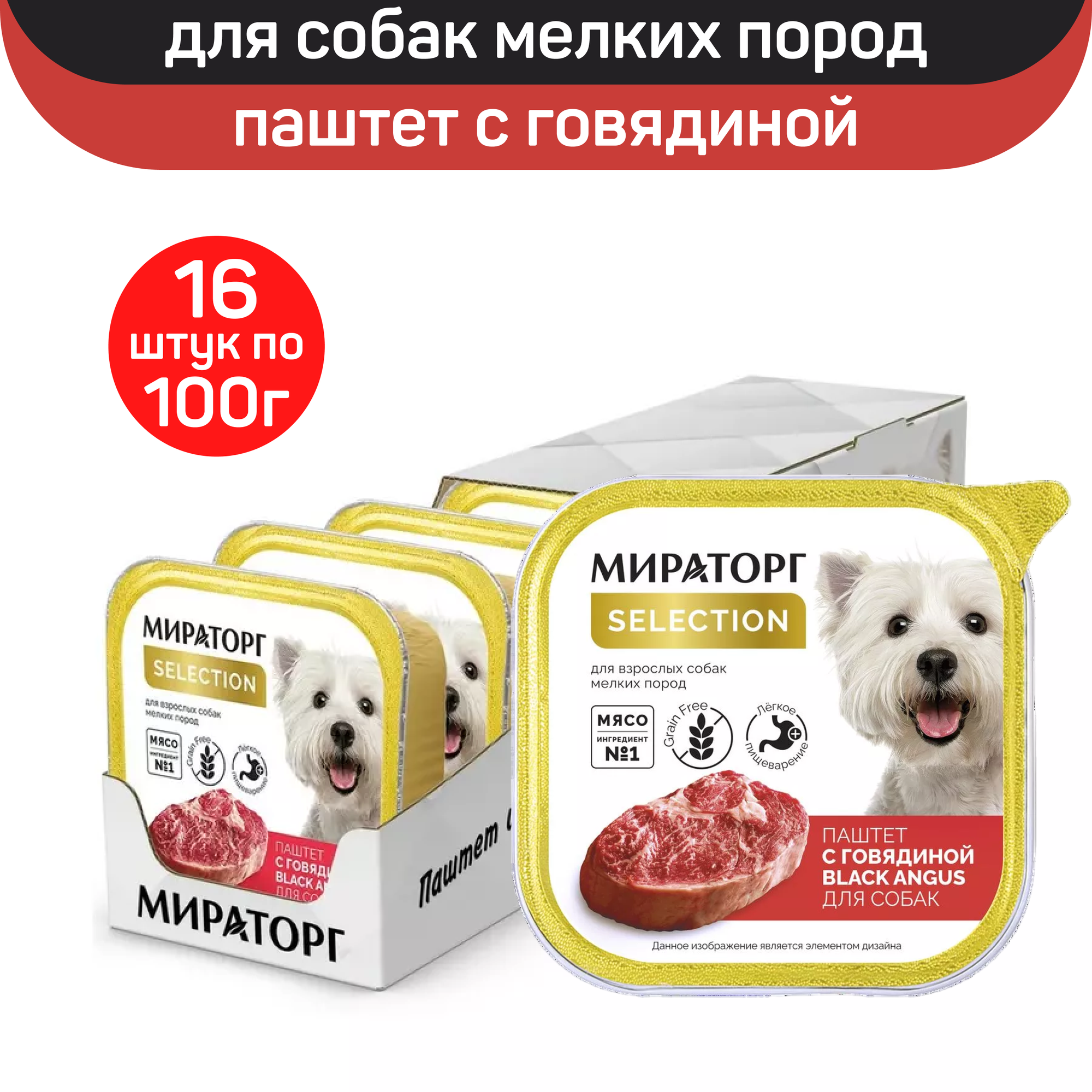 Влажный корм для собак мелких пород Мираторг Selection Паштет с говядиной 100 г