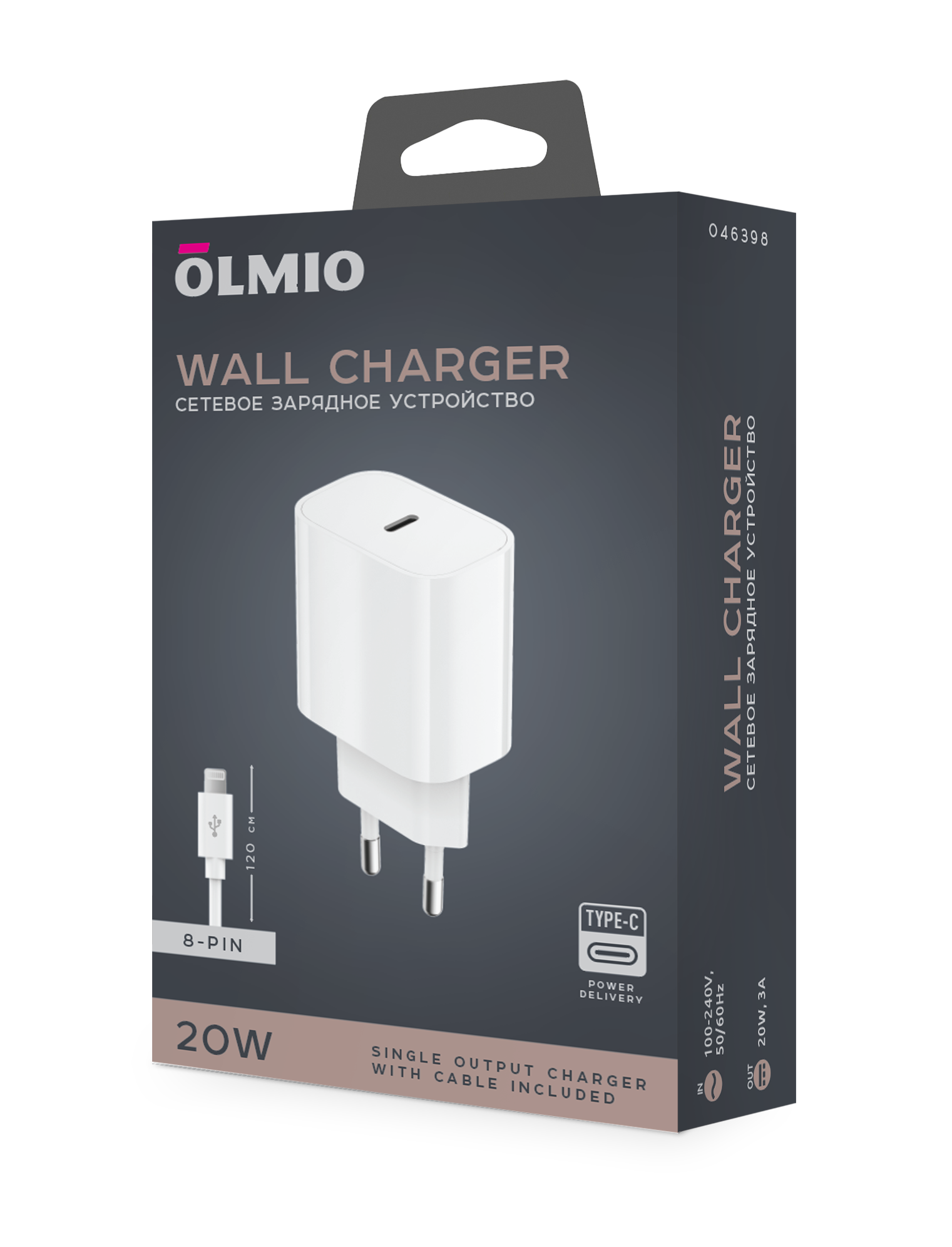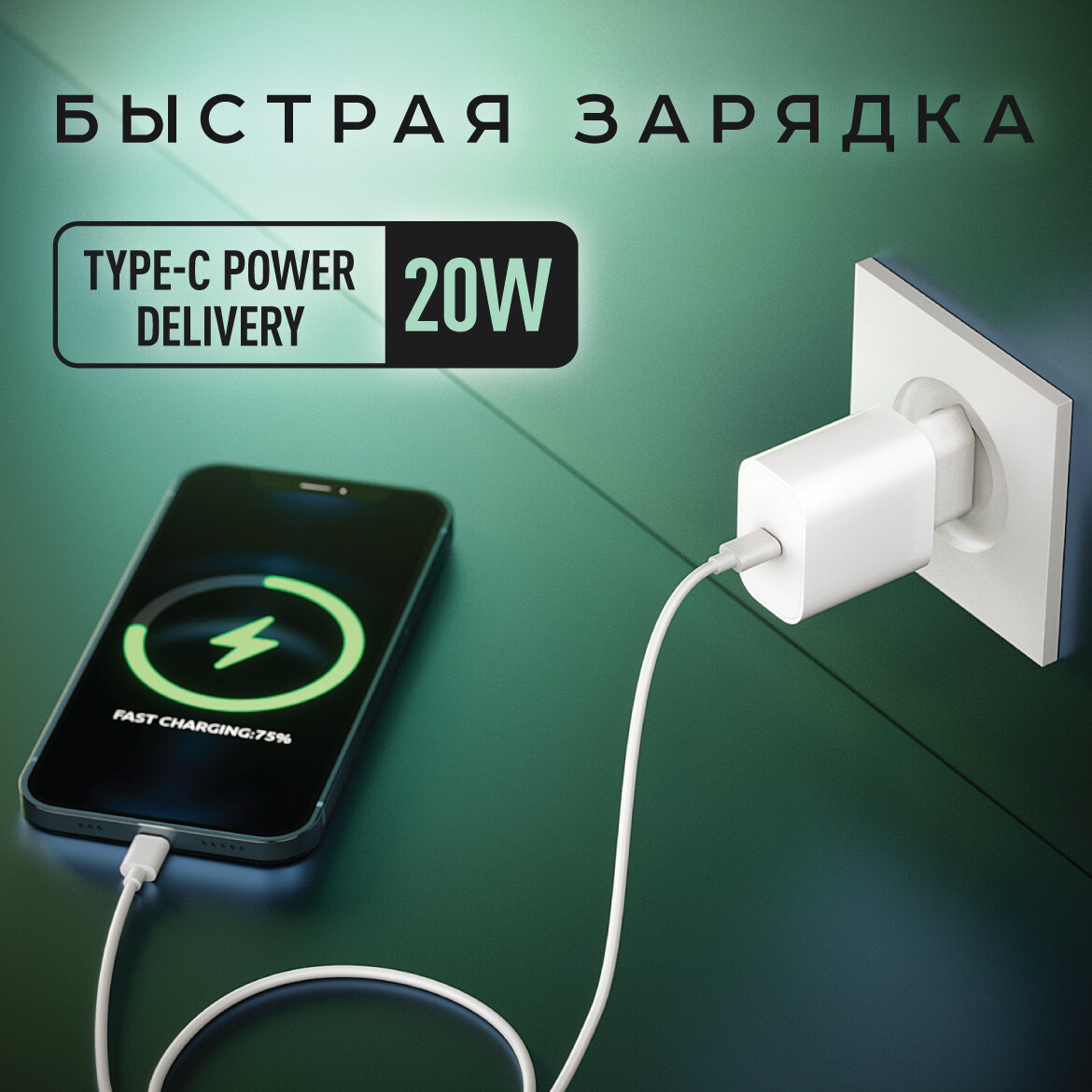 Сетевое зарядное устройство OLMIO 20W Type-C PD +8-pin cable white