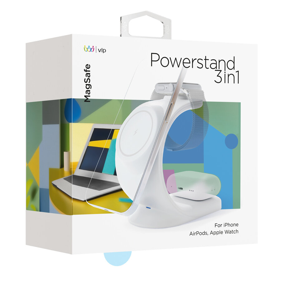 Беспроводное зарядное устройство VLP Powerstand 3in1 белое (1091004)