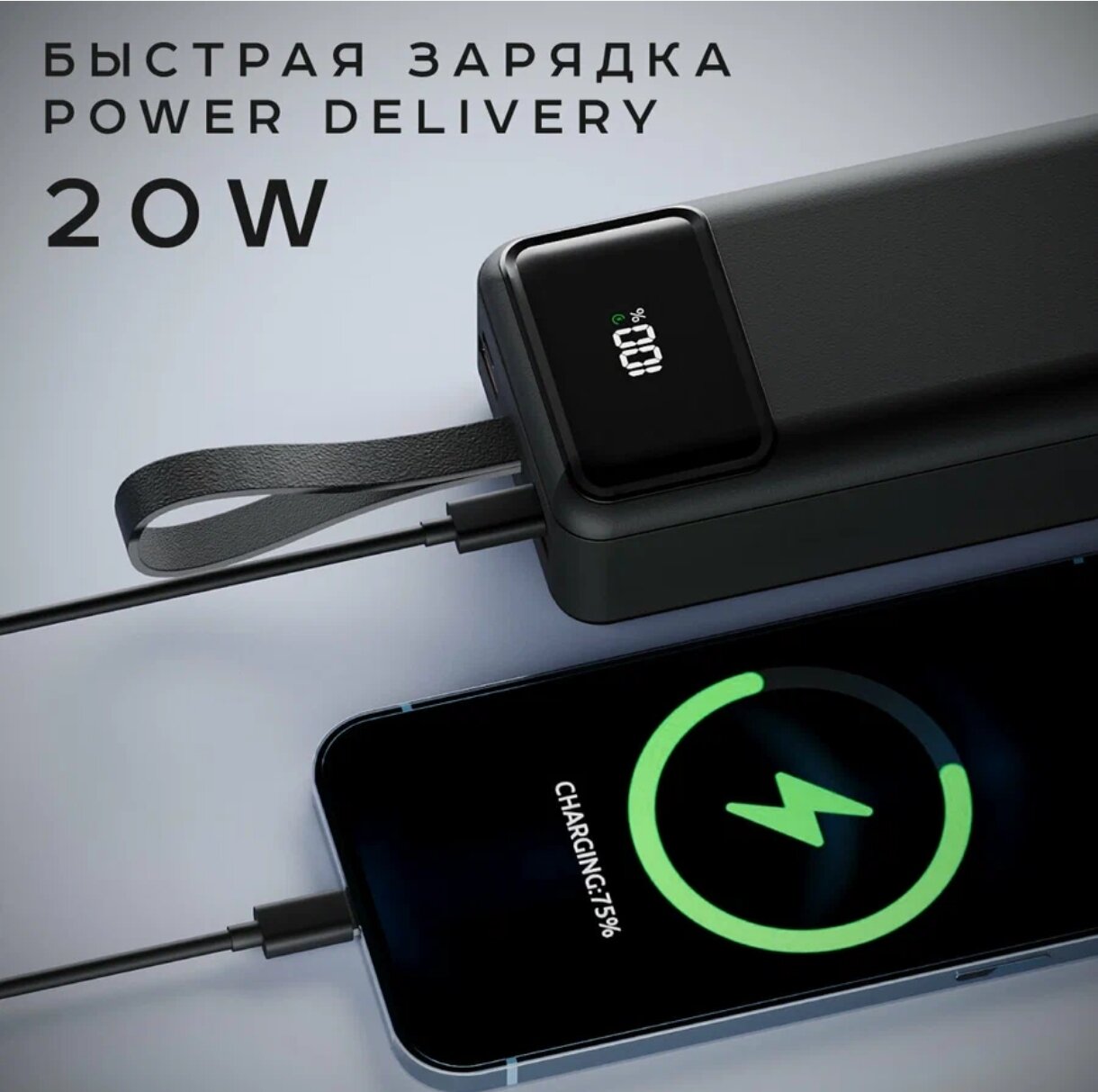 Представляем вам внешний аккумулятор Olmio M – идеальное решение для продолжительных путешествий и деловых поездок!. Большая емкость внешнего аккумулятора позволяет запастись энергией на несколько устройств, что особенно актуально для тех, кто часто находится вдали от источников электричества. Вам больше не придется беспокоиться о том, что ваш смартфон или планшет разрядится в самый неподходящий момент. Быстрая зарядка Power Delivery (20W) и Huawei SuperCharge(22.5W), QuickCharge (18Вт), обеспечивает молниеносную зарядку вашего устройства. Теперь вы сможете насладиться быстрой зарядкой, не дожидаясь долгие часы, пока ваш гаджет наберет полную емкость. PowerBank поддерживает одновременную зарядку трех устройств, что позволяет заряжать все ваши гаджеты одновременно, экономя время и упрощая вашу жизнь. Цифровой дисплей на корпусе аккумулятора позволяет контролировать уровень заряда, обеспечивая уверенность в том, что у вас всегда будет достаточно энергии для ваших устройств. Встроенный светодиодный фонарик станет незаменимым помощником в темное время суток или в условиях плохой видимости. Он поможет вам безопасно передвигаться и выполнять различные задачи. Olmio M поддерживает зарядку через Type-C и Micro-USB, что делает его универсальным решением для путешественников и людей, предпочитающих многофункциональные устройства. Удобный ремешок для переноски делает использование «повербанка» еще более комфортным. Вы можете легко прикрепить его к рюкзаку или сумке, чтобы иметь возможность заряжать свои устройства в любое время и в любом месте.