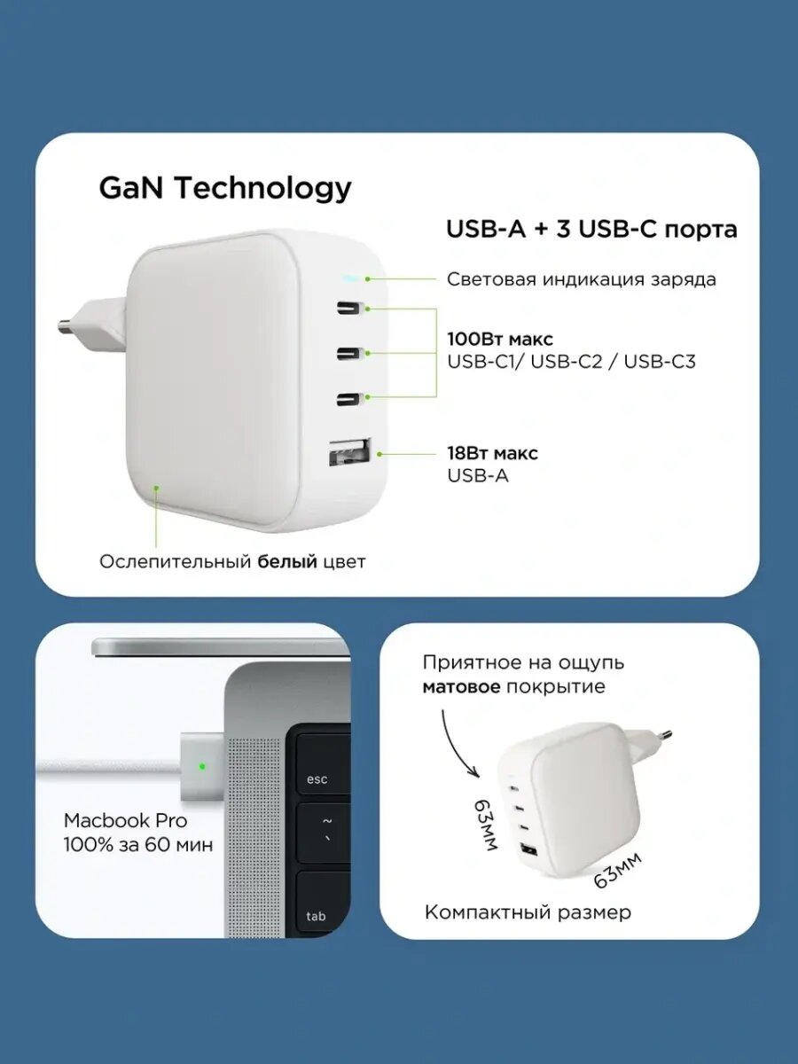 | Наименование модели | G-Charge 3xUSB-C/USB-A (1073004) белый |