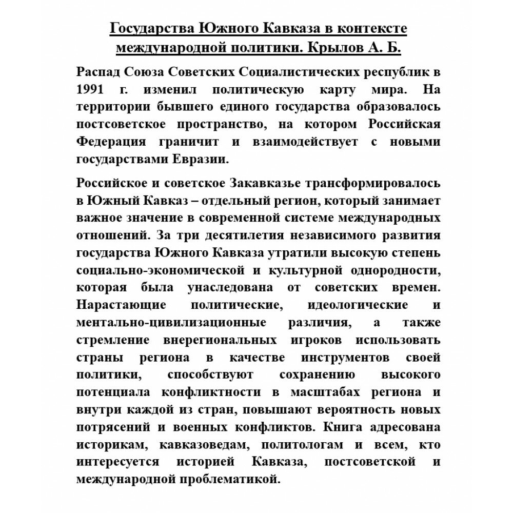 Государства Южного Кавказа в контексте международной политики (Крылов Александр Борисович); Книжный мир, 2023