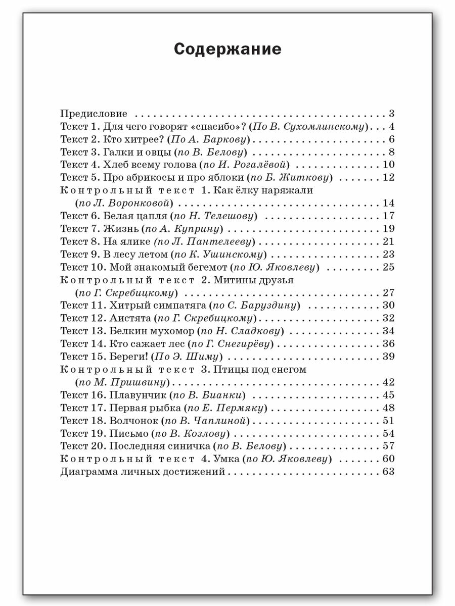 Цель этою тренажёра - совершенствование навыков чтения и понимания текста у младших школьников. В пособие включены литературные произведения, различные по тематике и содержанию, и задания к ним.