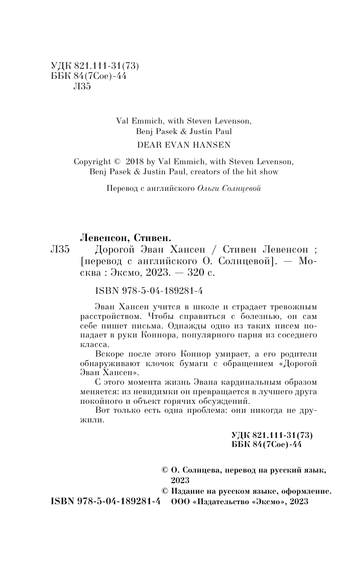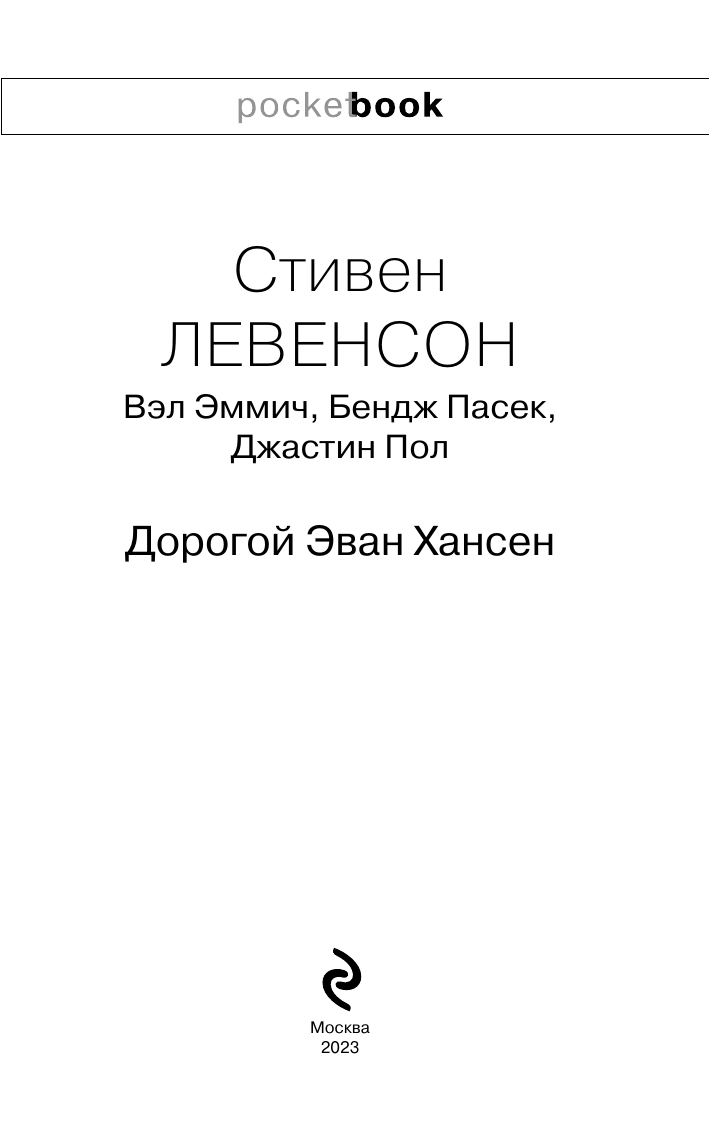 Книга: Дорогой Эван Хансен (Стивен Левенсон, Бендж Пасек, Пол Джастин, Вэл Эммич); Эксмо, Редакция 1, 2023