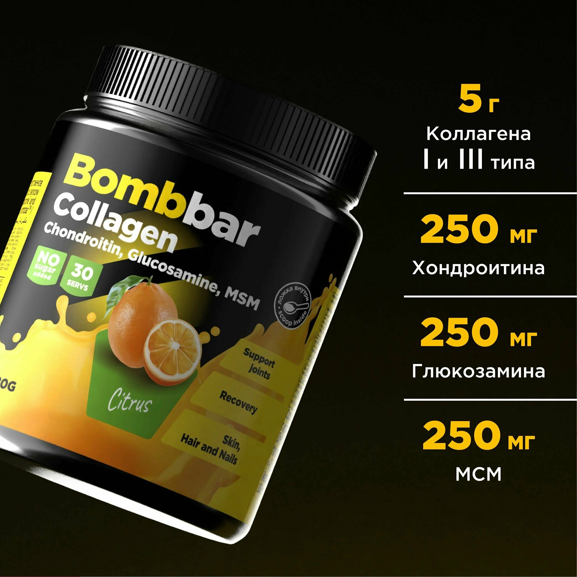 Коктейль коллаген с хондроитином глюкозамином и МСМ цитрус Bombbar 180г ООО Фитнес Фуд (2664470)