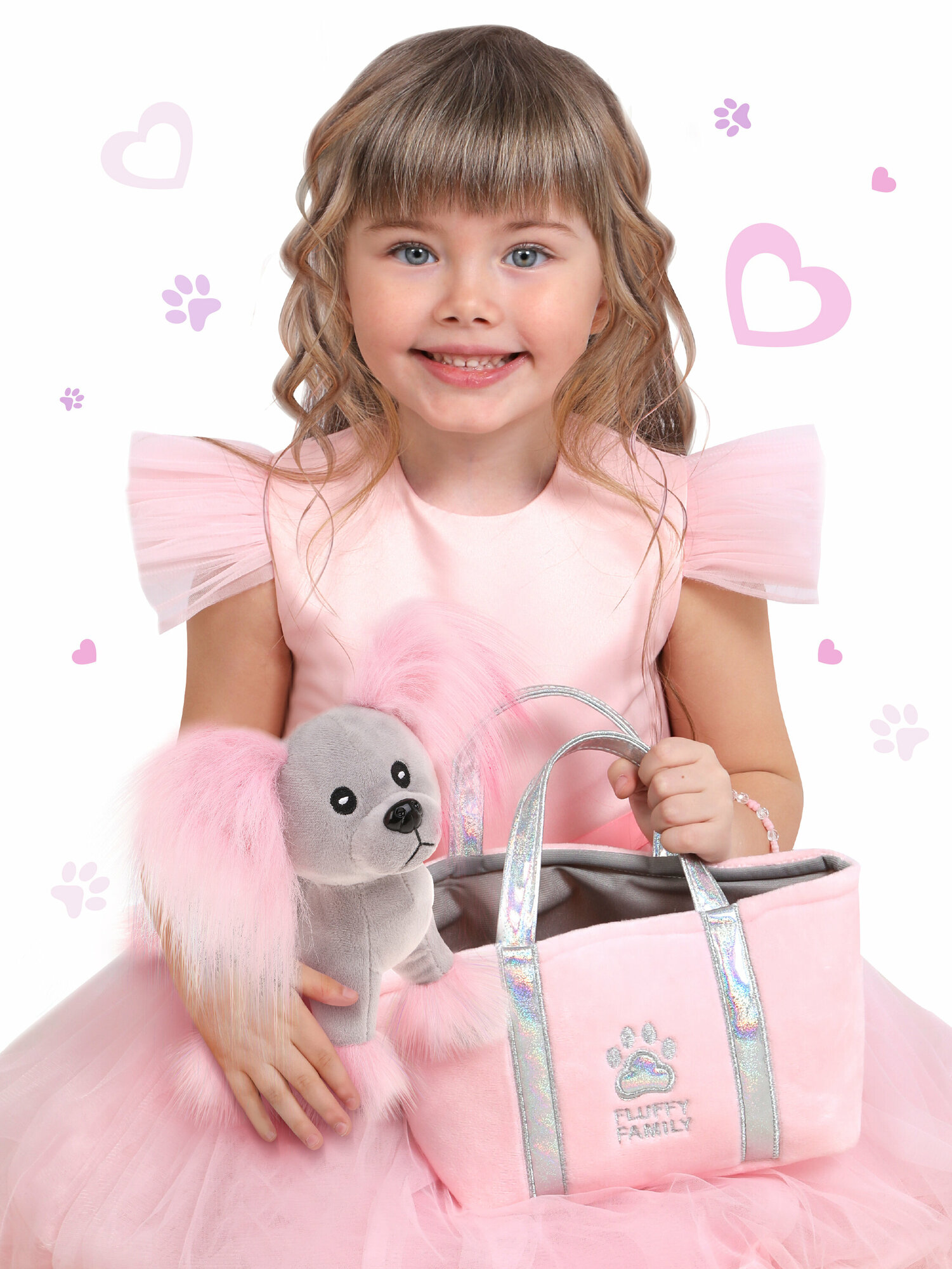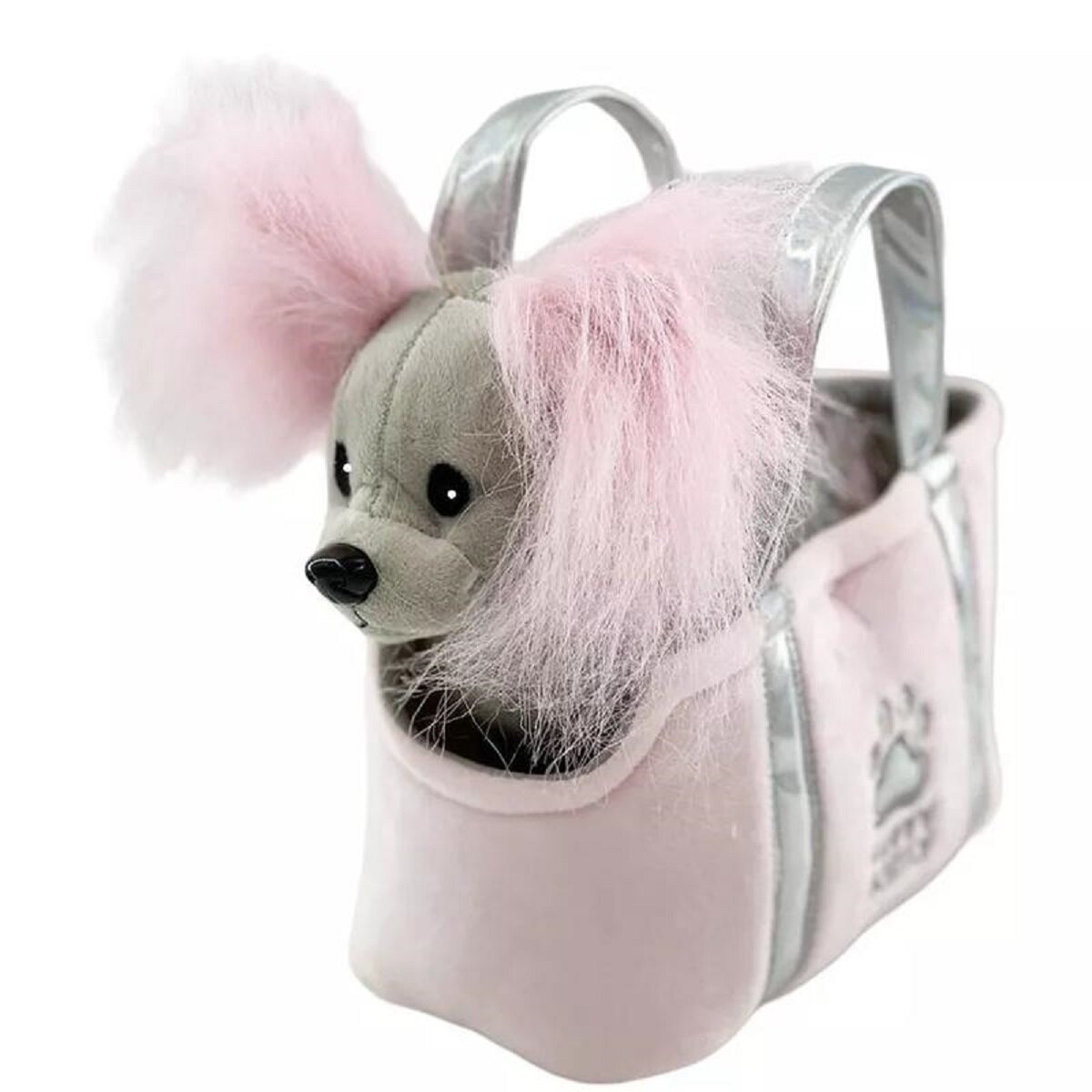 Замечательный подарок для девочек, который не оставит равнодушной ни одну маленькую модницу стильная сумочка с мягкой игрушкой в виде китайской хохлатой собаки. Это изящная порода маленьких, комнатно-декоративных собак, отличающаяся весьма оригинальным внешним видом. Сумочка выполнена в нежно-розовом цвете, а серебряные ручки добавляют изделию гармоничный акцент. Выглядит очень эффектно! Ну а вместе с мягкой игрушкой, выполненной в серо-розовых тонах, можно произвести полный фурор!