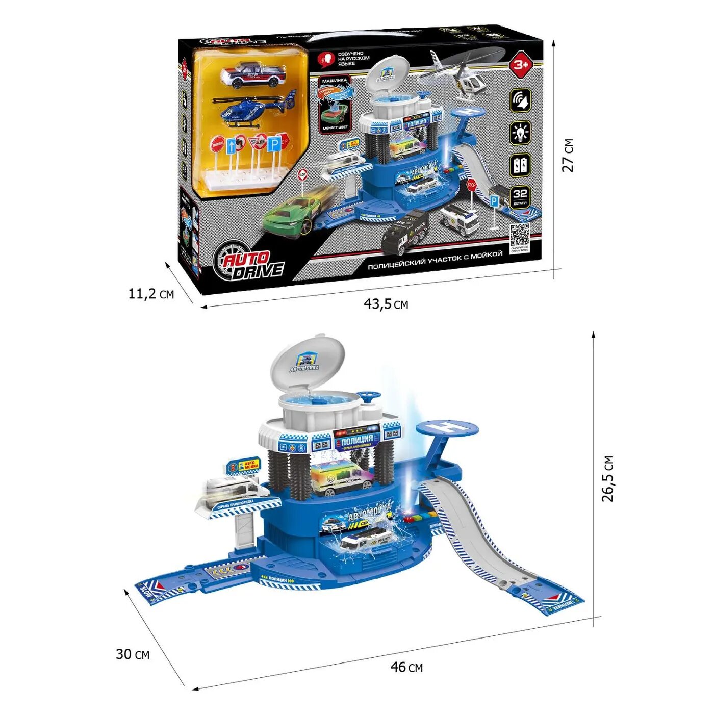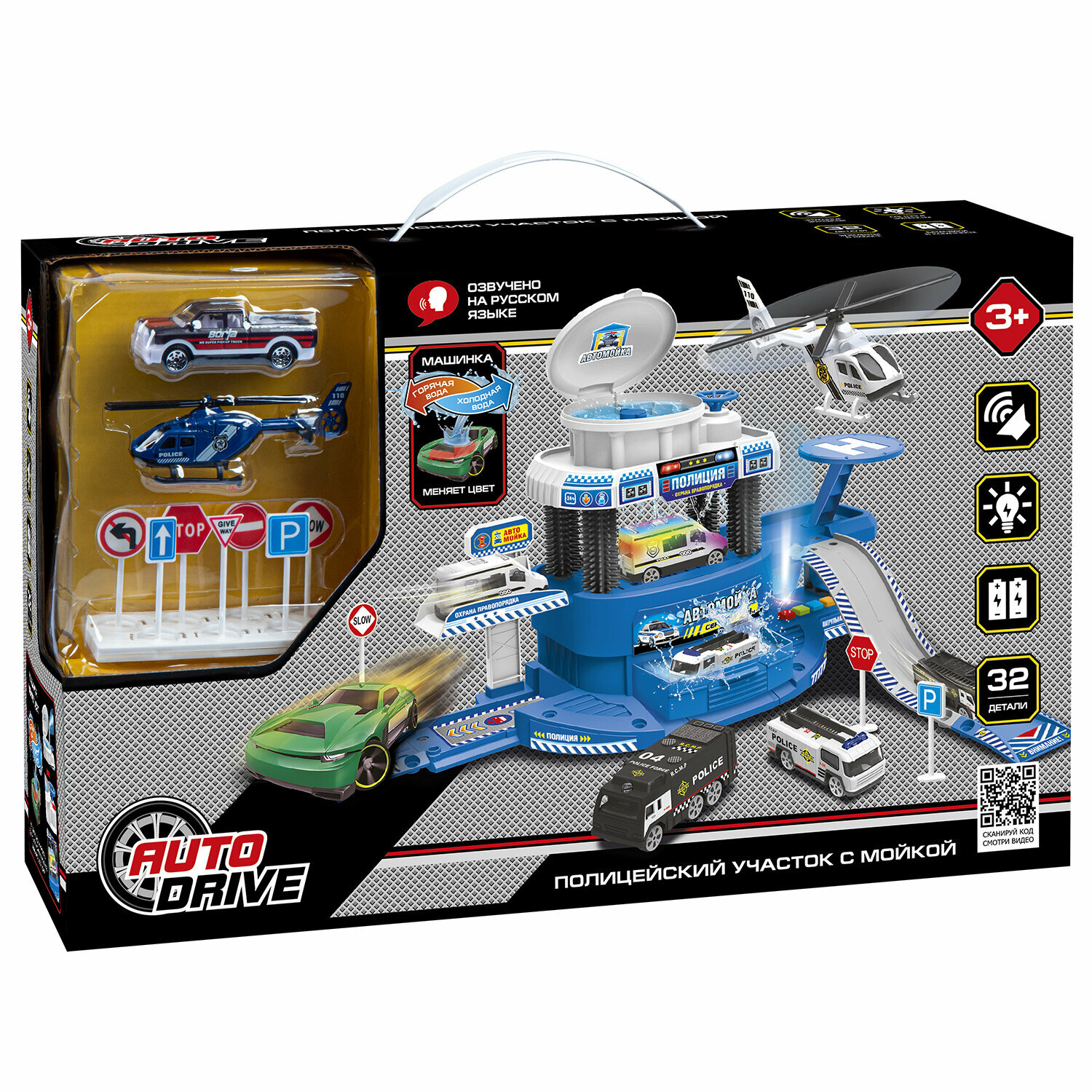Парковка с автомойкой Полиция торговой марки AUTODRIVE - игрушка, от которой будет в восторге каждый ребенок!